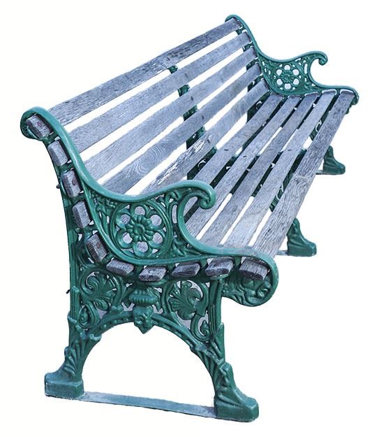(Disneyland, Main Street U.S.A., c. 1990's-2000's). A very rare and exquisite Disneyland Main Street U.S.A. park used metal and wood bench. This style of bench is found mostly around the hub near the "Partners" statue and Sleeping Beauty Castle. Some benches of this style also appear near "The Haunted Mansion" in New Orleans Square. Of the benches that are found in the park, there are typically medium and large sized benches. This bench is of the medium size. The bench is in good working condition with normal wear from age and park use and measures approximately 78" x 30" x 23".