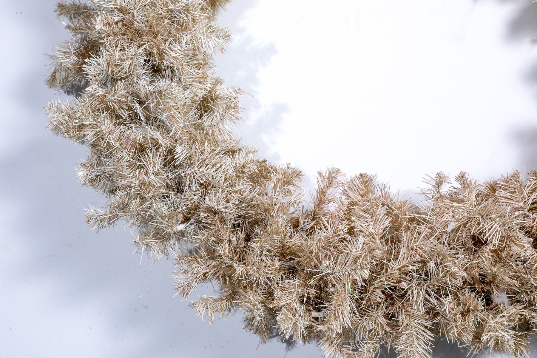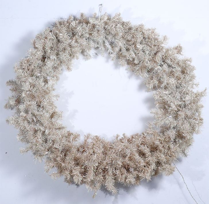 (Disneyland, c. 2000's). A park used Disneyland Christmas wreath prop. The wreath is a light green tone with interweaving strand of yellow lights. The lights are in working order for approximately three quarters of the wreath. Item comes with a Grand Circle Tour Auctions COA.