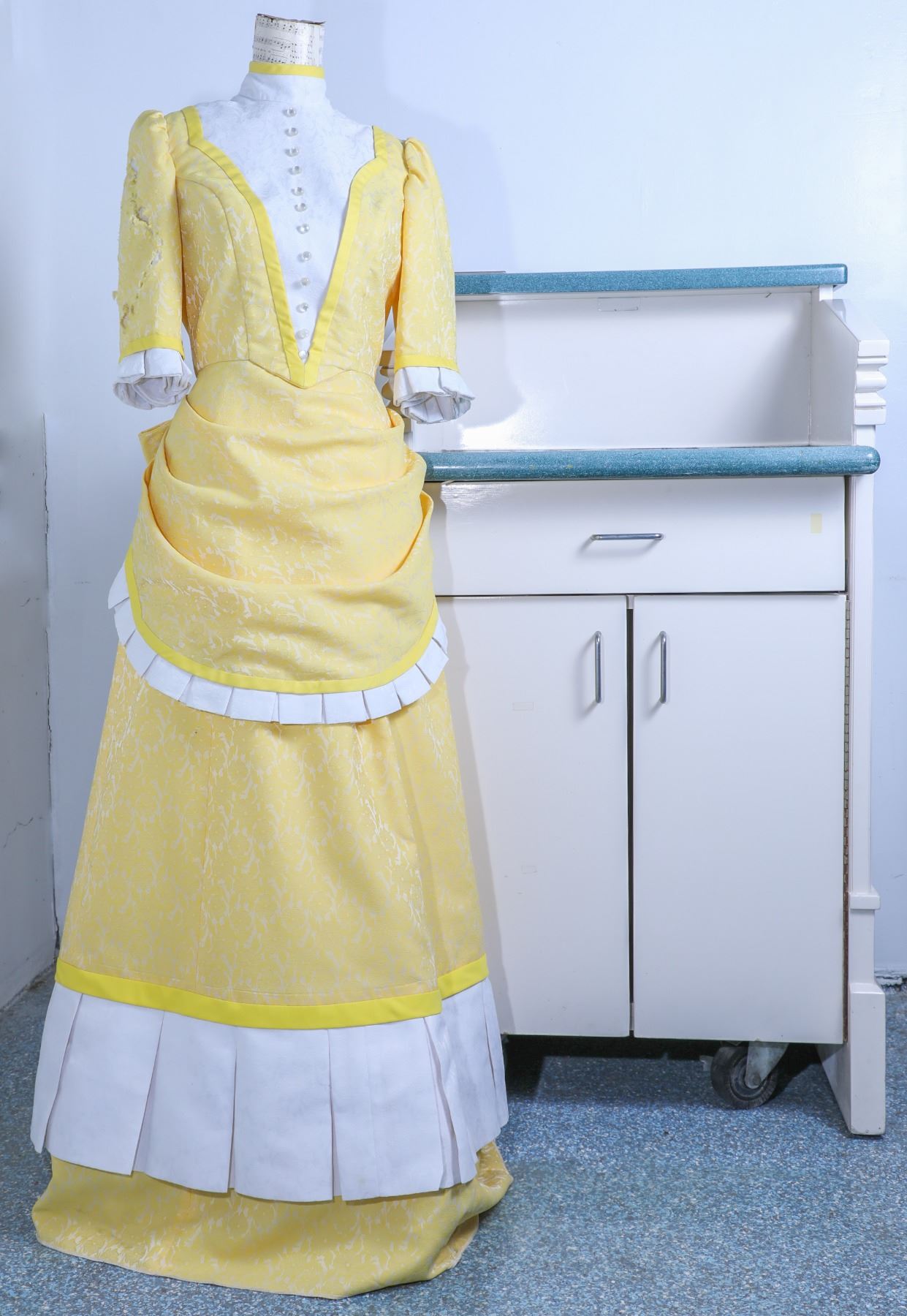(Disneyland, c.1960's-70's). Disneyland "Plaza Inn" opened July 18, 1965. A guest-favorite on Main Street U.S.A., featuring classic American dining. Offered here is an early Plaza Inn Cast Member dress. The dress looks stunning overall, however the right arm sleeve has some damage (as seen in the images). Also offered here is a park prop host/hostess podium used at Disneyland Main Street U.S.A. Plaza Inn Restaurant. The podium is in good condition with normal wear from age and park use, including edge and surface wear. The podium measures approximately 47" x 26" x 20". Item comes with a Grand Circle Tour Auctions COA.