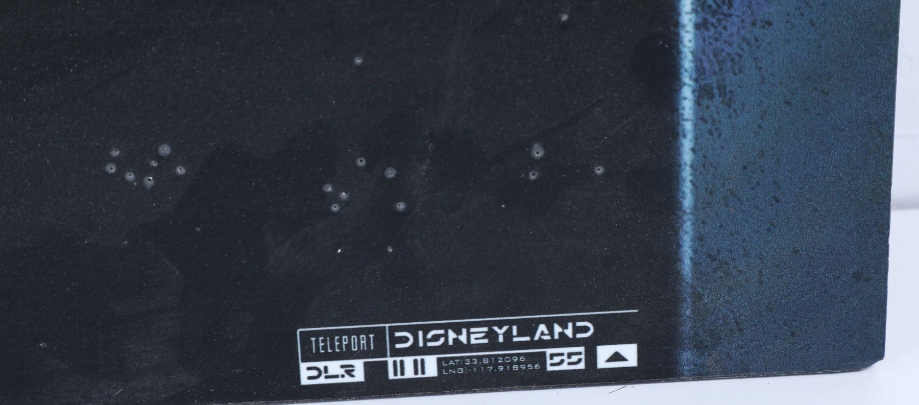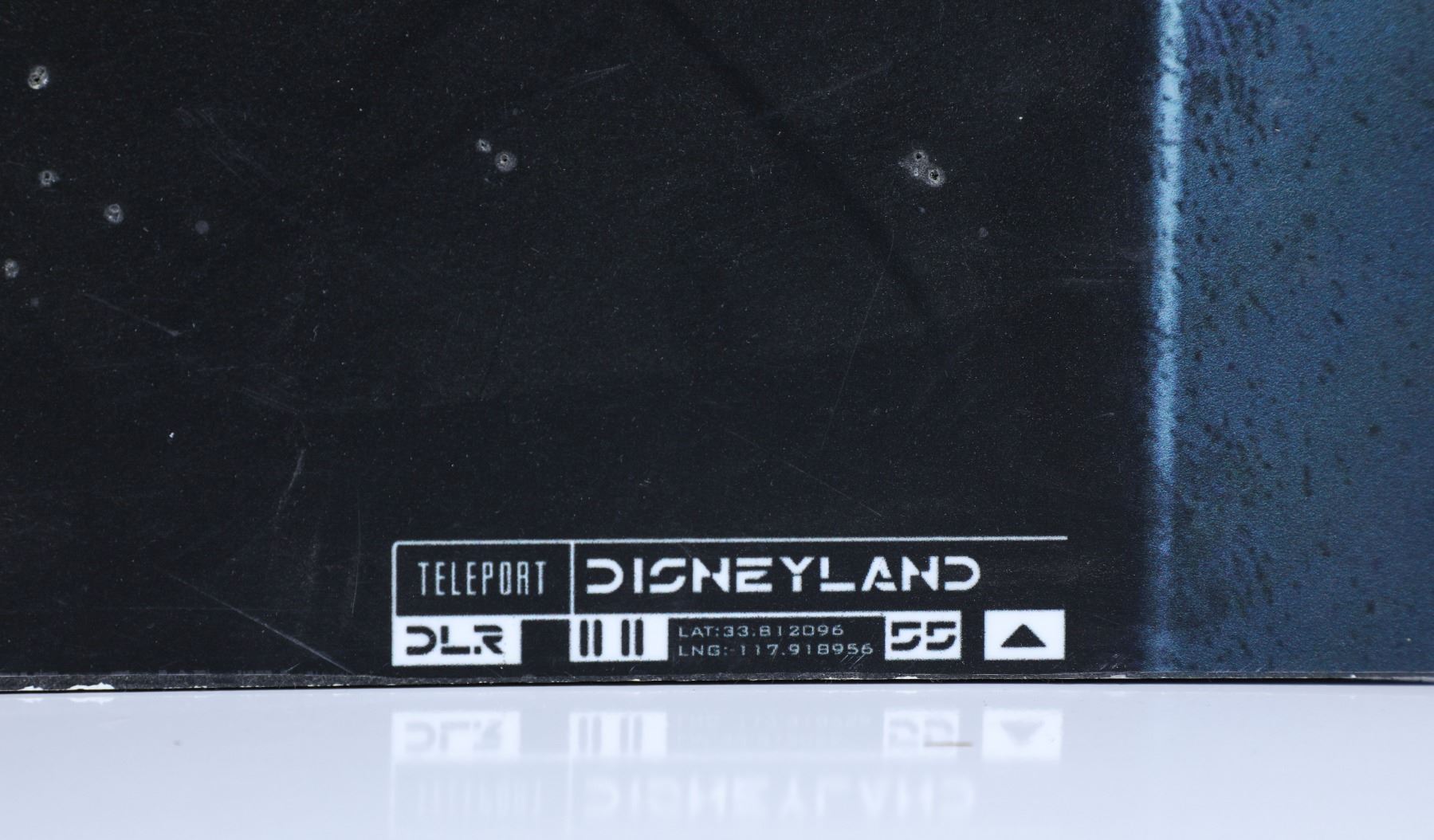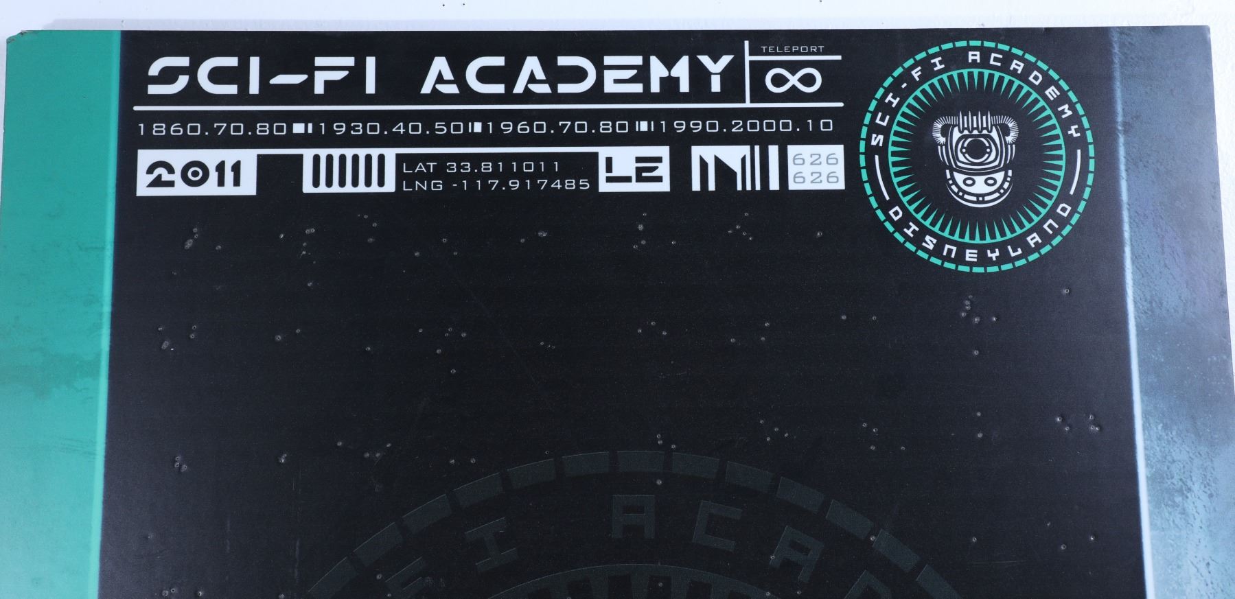 (Disneyland, c. 2011). Disneyland park used poster displays for the Tomorrowland Sci-Fi Academy. The posters are in good condition with normal wear from age and park use, including scuff marks and fading of the posters. Both posters are printed on foam core. The posters each measure about 34.75" x 27.75". Item comes with a Grand Circle Tour Auctions COA.