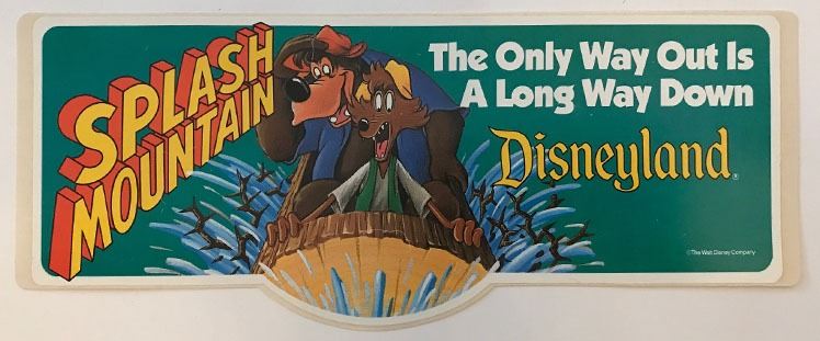 (Disneyland, c. 1990's-2000's). An unused Disneyland Splash Mountain bumper sticker. A wonderful souvenir for an attraction that will soon be getting a completely new story and characters theme. The bumper sticker is in good condition with normal wear from age and minimal handling. Item comes with a Grand Circle Tour Auctions COA.