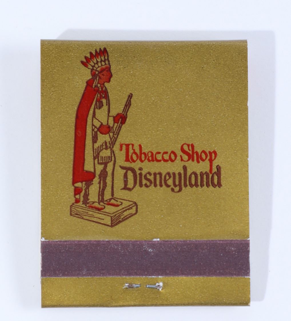 (Disneyland, c. 1950's-60's). A Disneyland Tobacco Shop matchbook. The Tobacco Shop opened on Main Street U.S.A. in 1955 between the Magic Shop and the Main Street Cinema. The matchbook is in good condition being unused with just normal wear from age and minimal handling. Item comes with a Grand Circle Tour Auctions COA.
