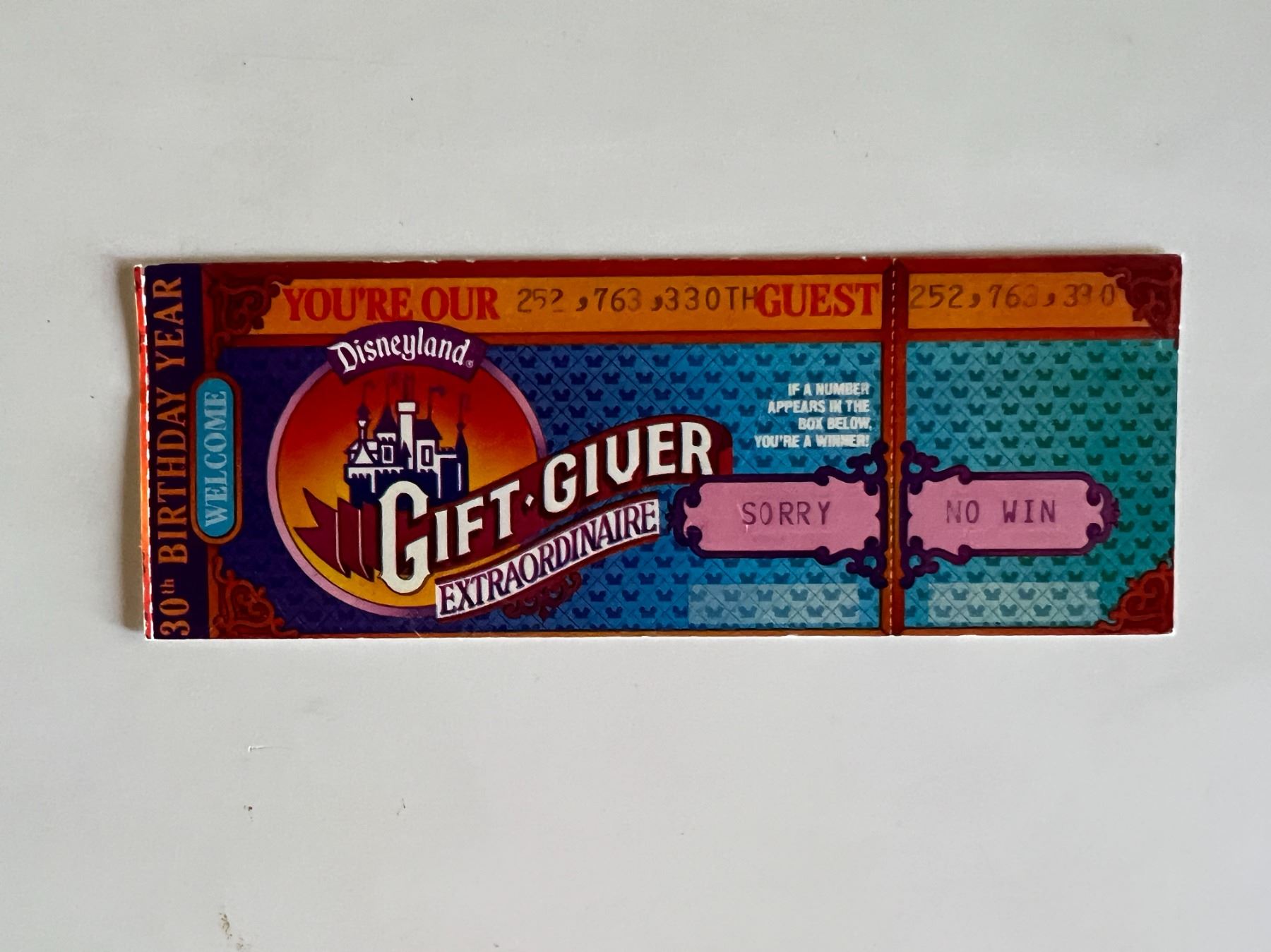 Disneyland admissions ticket. Circa 1985 Disneyland 30th anniversary 2x5 inches