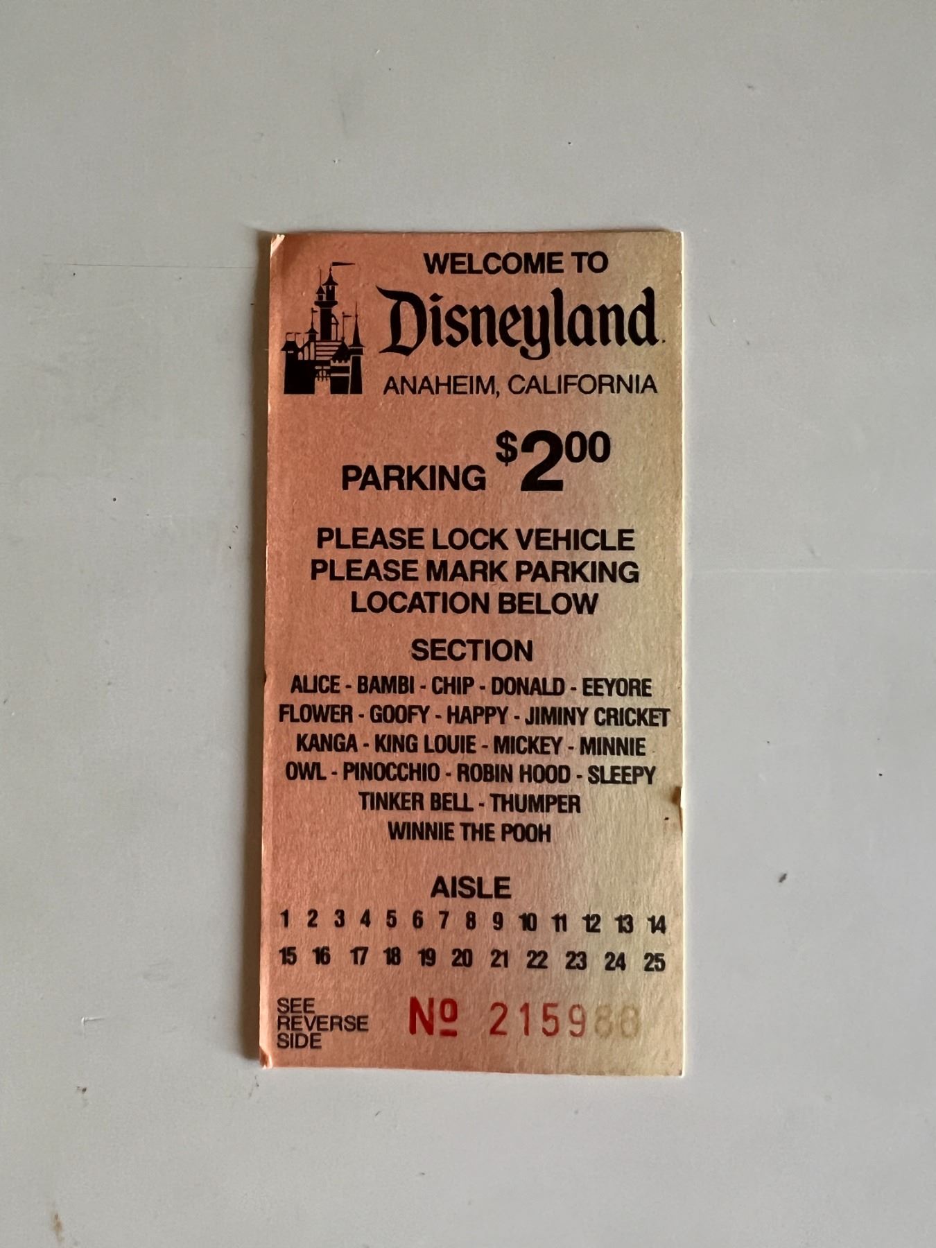 Disneyland Vintage parking ticket. 2x4 inches