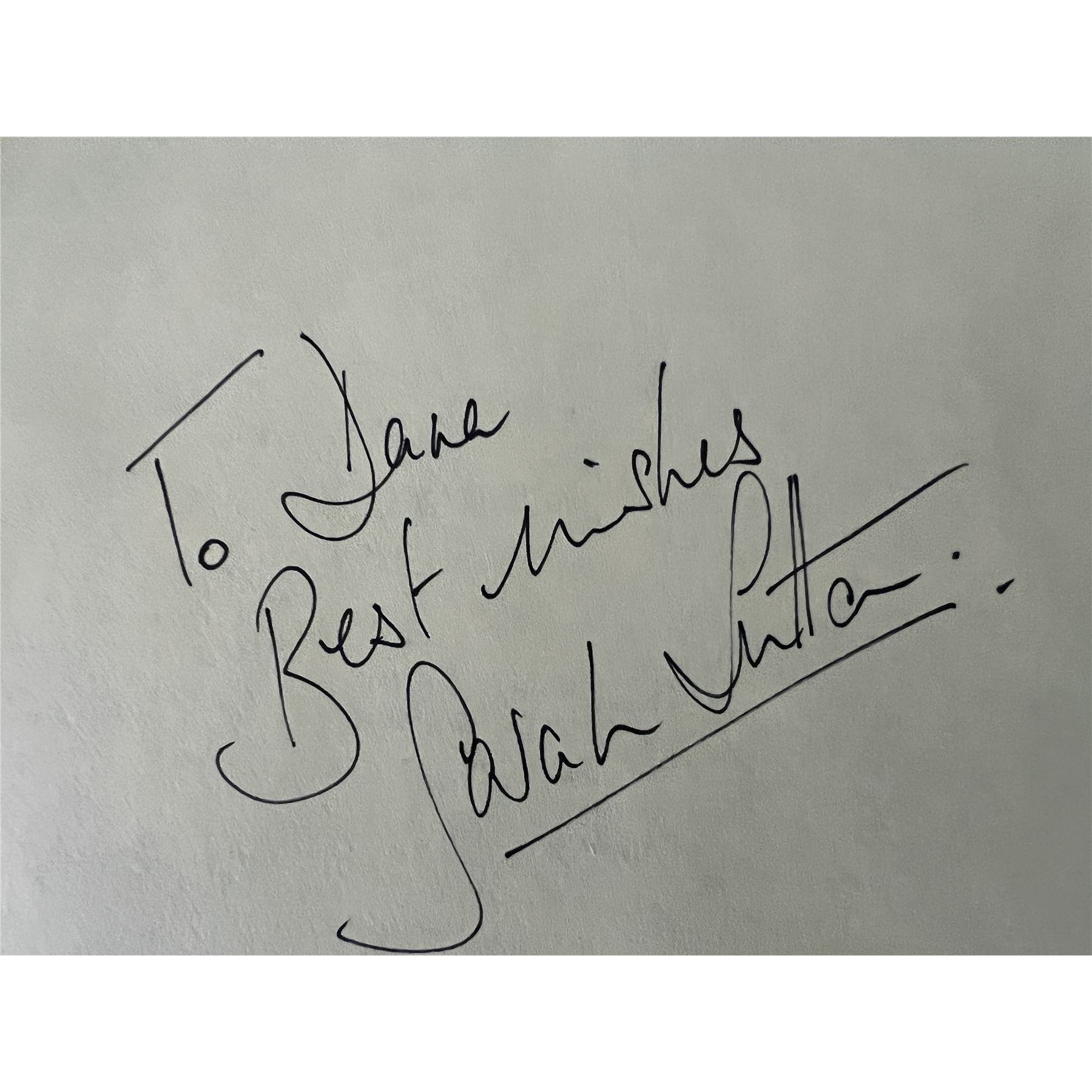 Doctor Who Sarah Sutton autograph. 4 x 6 inch