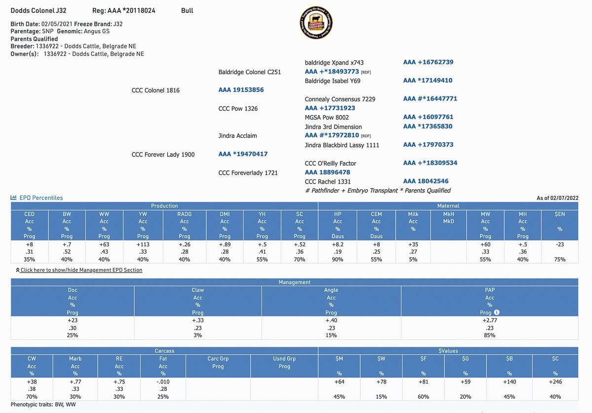 J32 is a calving ease prospect that both of his grandsires (Colonel and Acclaim) are past breed leaders in registrations. Very sound proven pedigree.