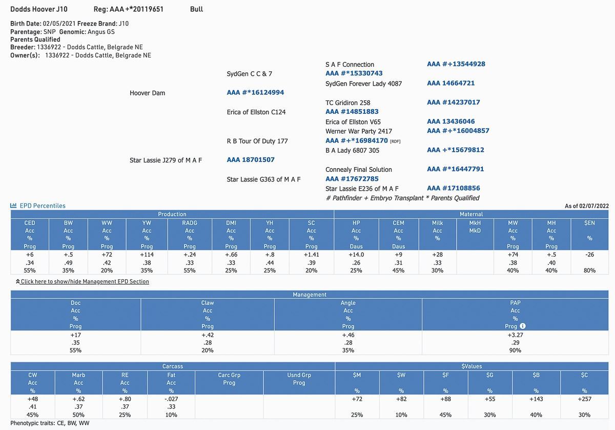 J10 really checks the box of proven genetics. Hoover dam has over 17,000 calves turned in on birth weight and Tour of Duty has over 13,000 turned in. Consistency is the key to a calf crop and this bull will do it.