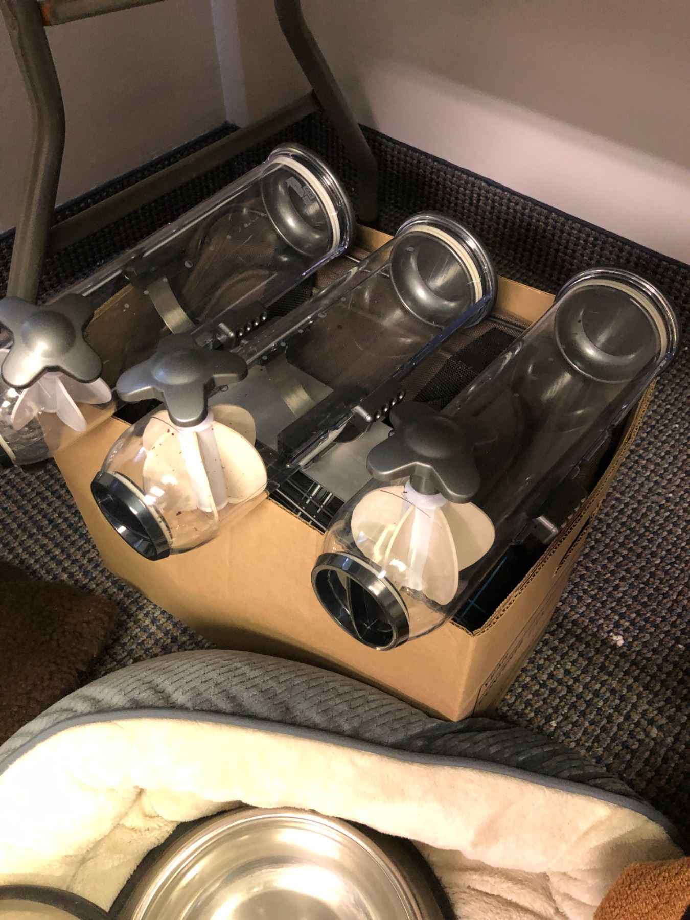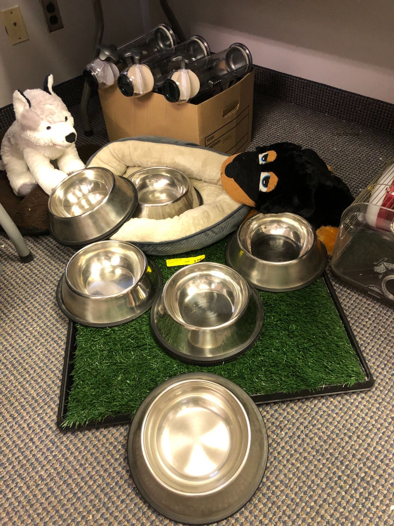 Dog Collection - large stainless food bowls, Fake grass pee mat, two dog beds, two stuffed dogs and food dispensers plus bags