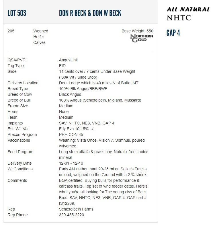 Don R Beck & Don W Beck - 205 Weaned Heifers; Base Weight: 550