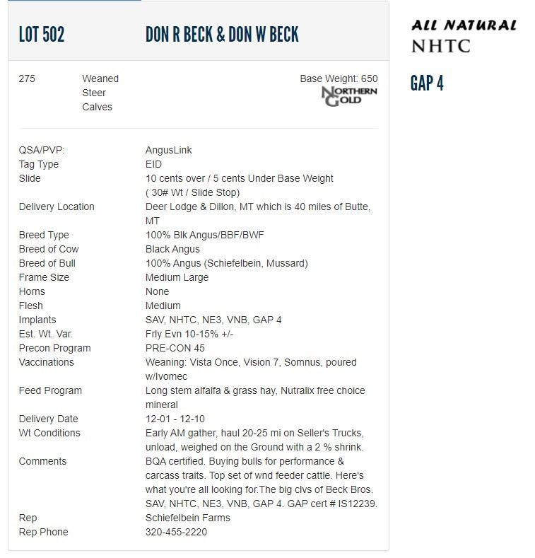 Don R Beck & Don W Beck - 275 Weaned Steers; Base Weight: 650