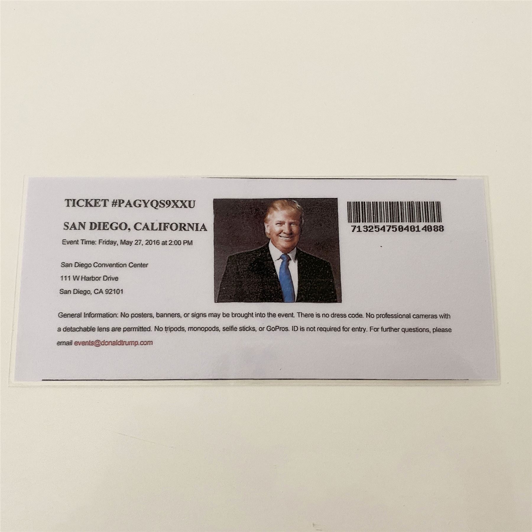 Donald Trump 5/27/16 MAGA Rally Event Ticket, San Diego, CA
