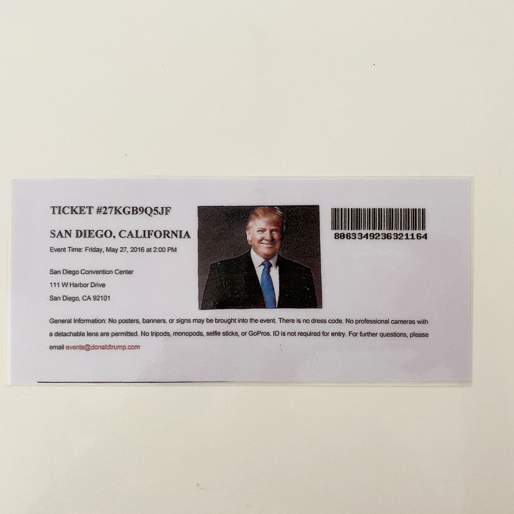 Donald Trump San Diego 2016 MAGA Rally Event Ticket- California