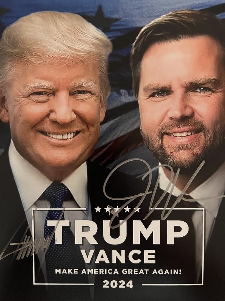 Donald Trump and J.D. Vance signed photo. 8x10 inches