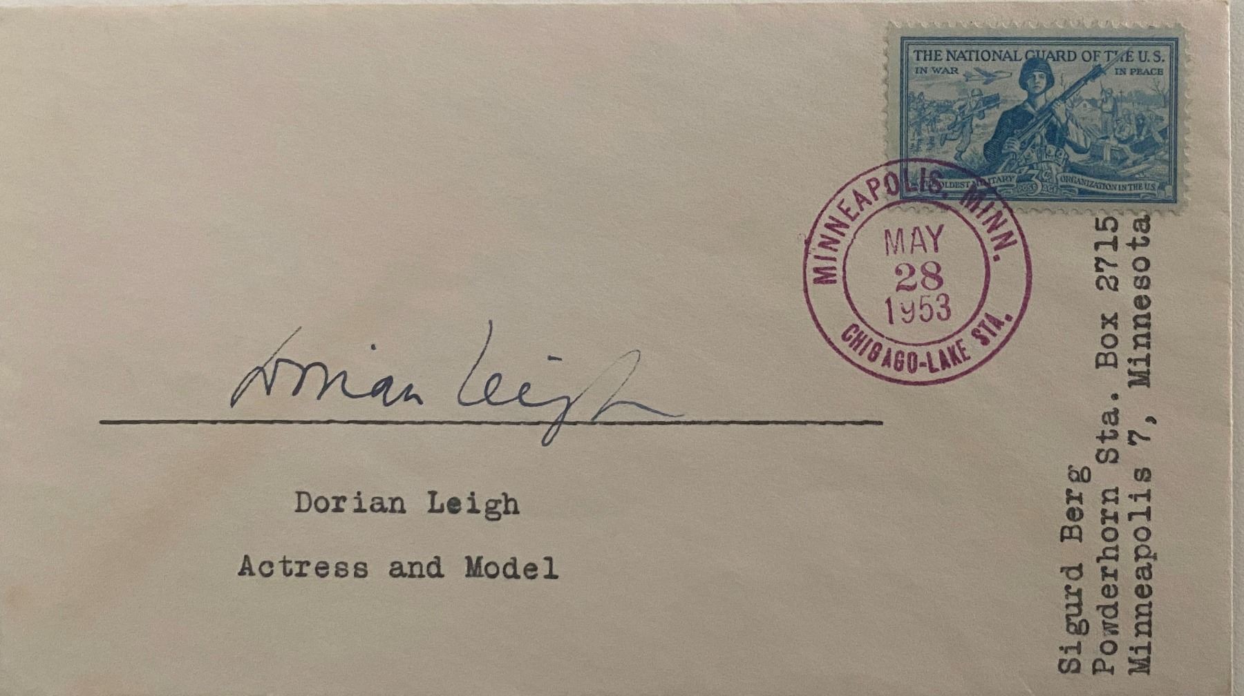 Dorian Leigh signed 1953 cover - Minneapolis, MINN.6x4 inches
