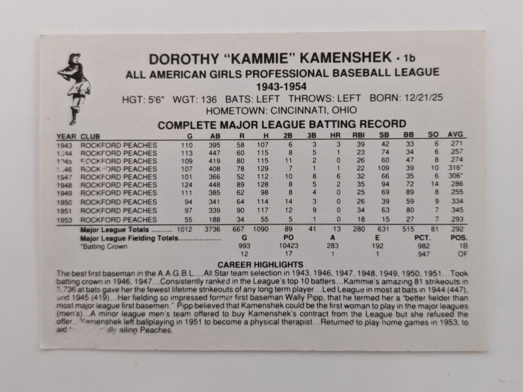 Dottie Kammie Kamenshek Signed Baseball Trading Card
