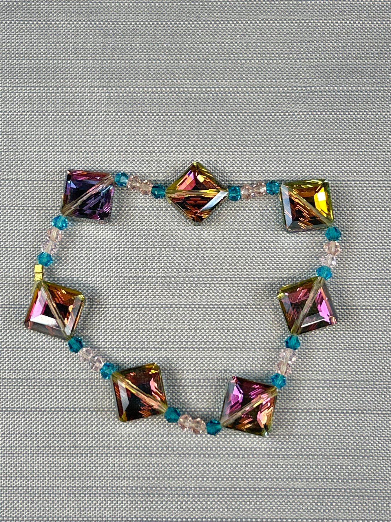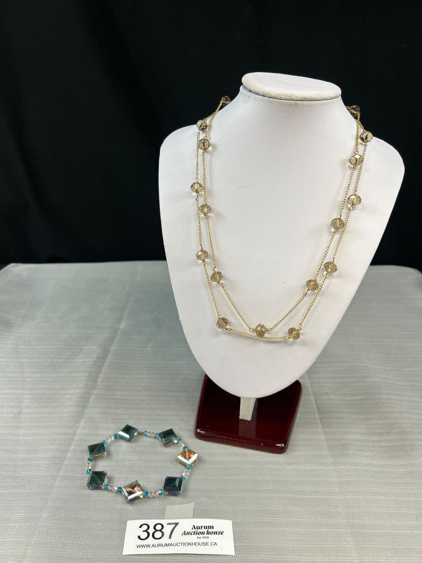 Double Length Crystal Beads Necklace, Marked Hon on Label + Crystal Beads Bracelet