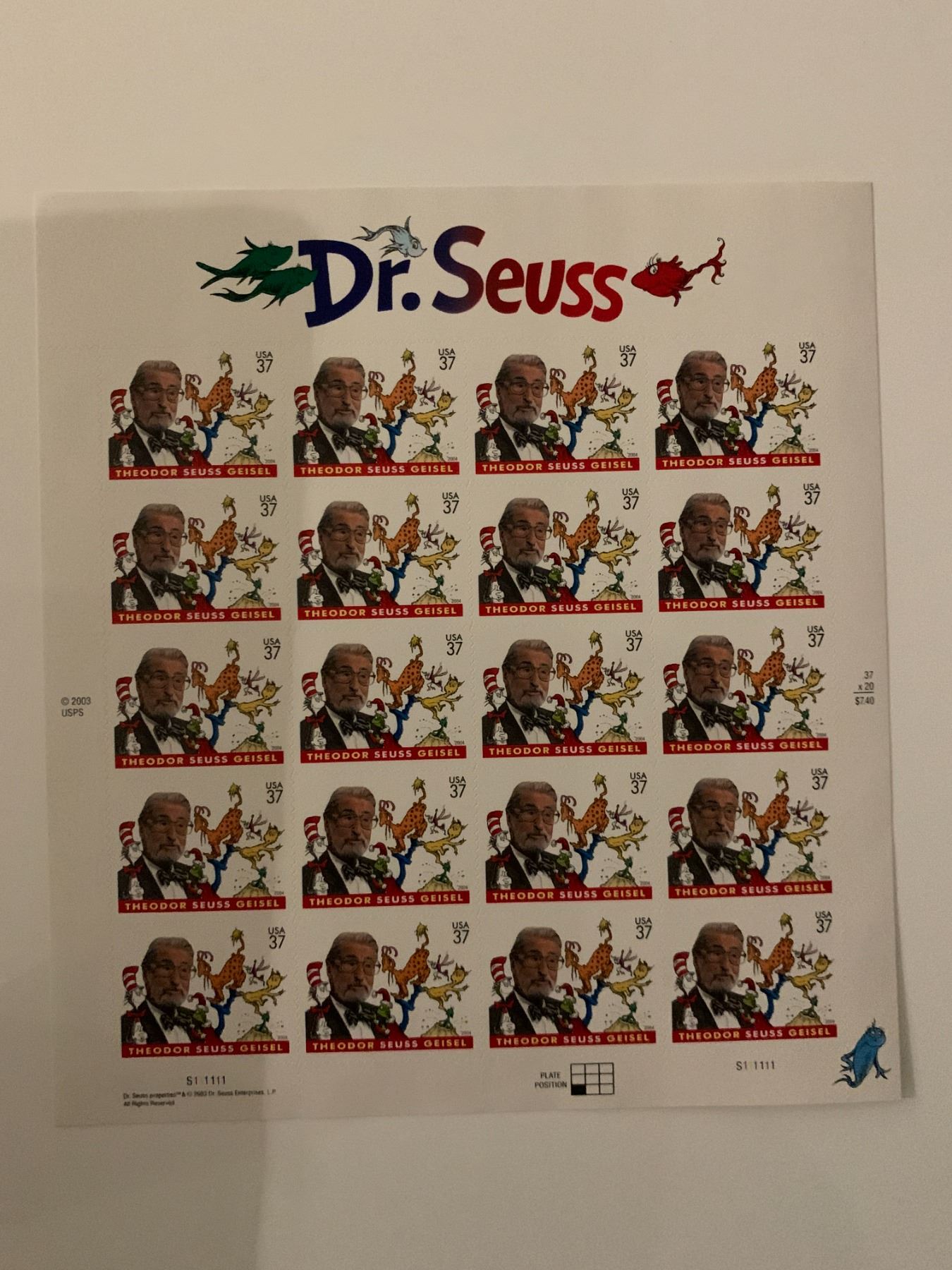 Dr Seuss collectors stamp set. Each unused stamp is 37 cents
