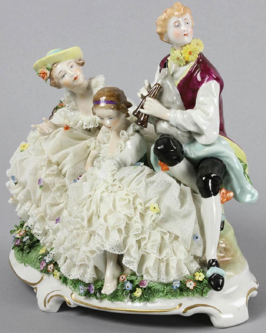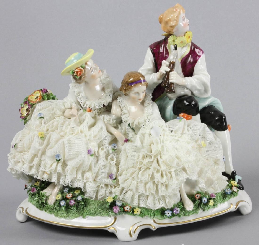 Dresden porcelain grouping, 8 1/2" H x 9 5/8" W x 6" D. Provenance: Cotuit, Massachusetts collection.