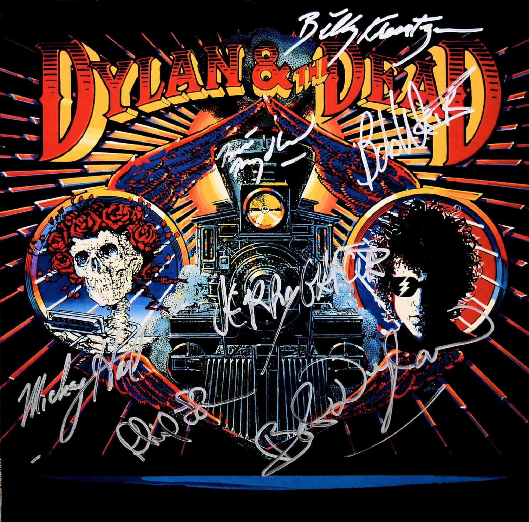 Dylan & The Dead 1989 signed debut album. Signed: Jerry Garcia, Brent Mydland, Bob Weir, Mickey Hart, Billy Kreutzmann, Phil Lesh, and Bob Dylan.
