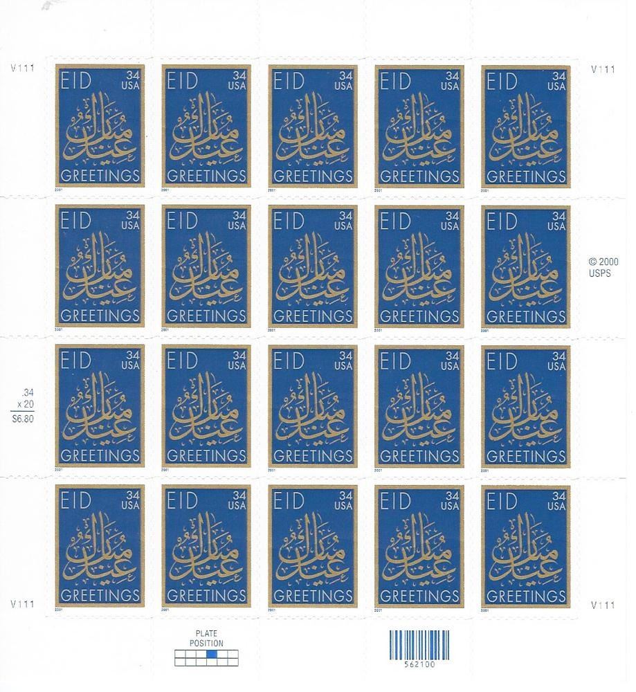 EID Greetings Stamp Sheet - USA - 34 Cents x 20 Stamps - 2000 USPS