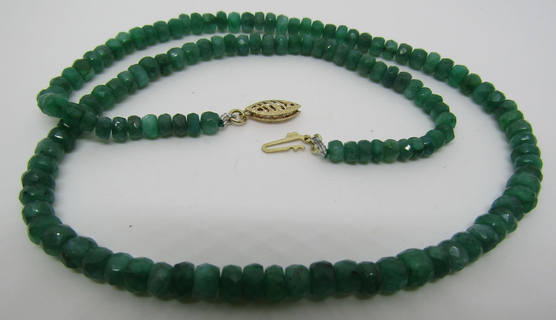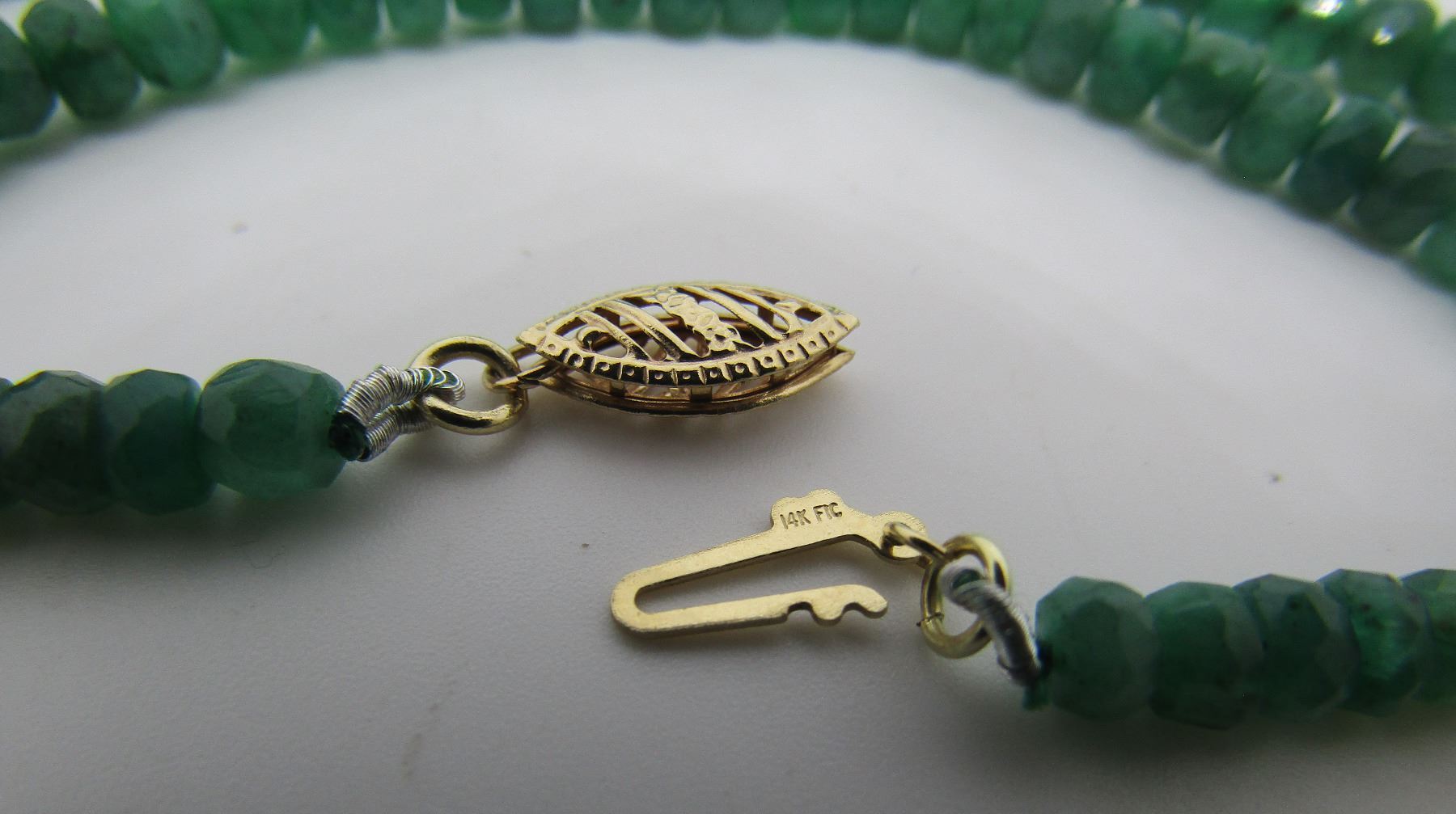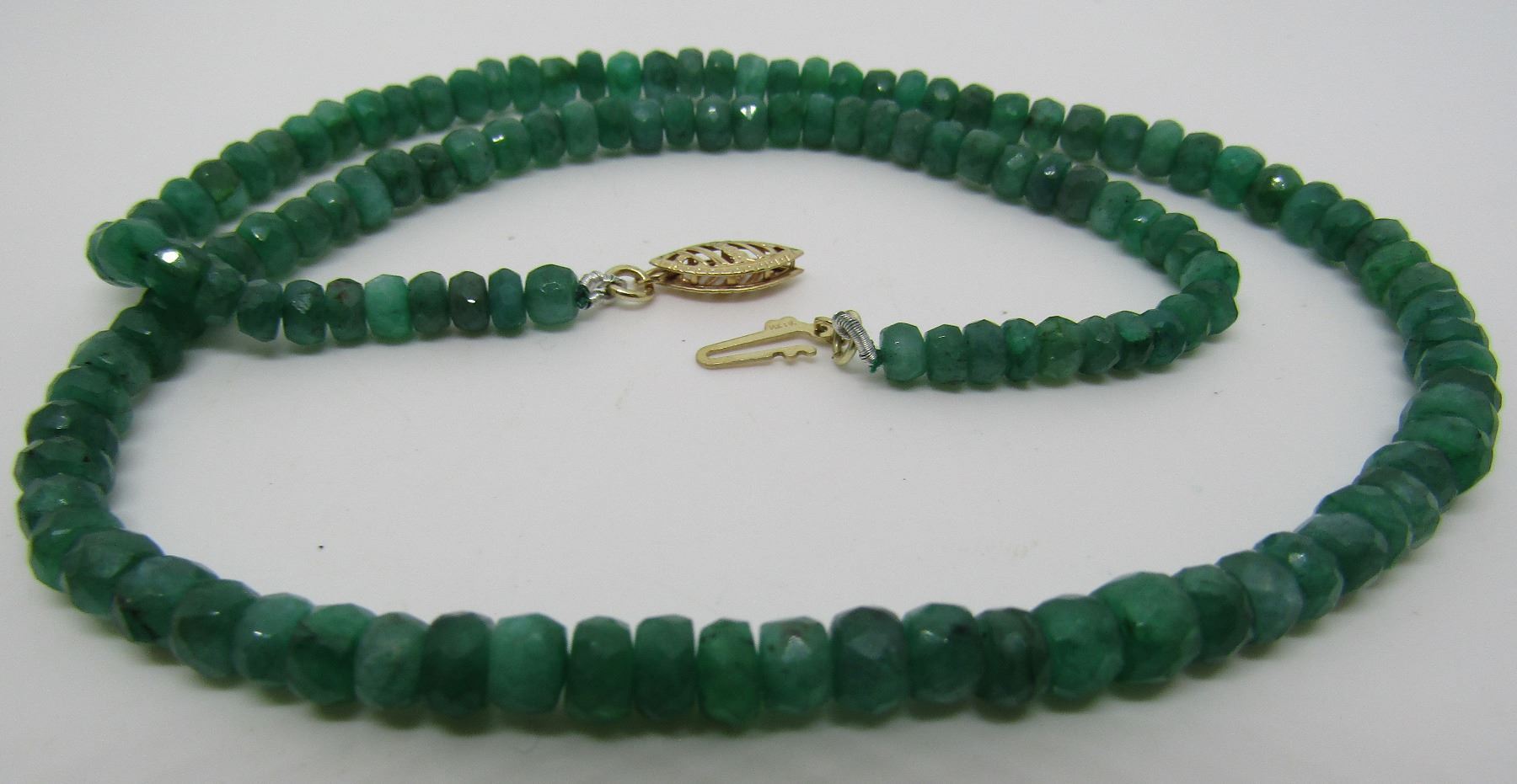 VINTAGE ESTATE 18 INCHES LONG WITH GENUINE EMERALD STONES 6MM TO 4MM. WEIGHT: 15.5 GRAMS. MAY BIRTHSTONE. USA SHIPPING $8.
