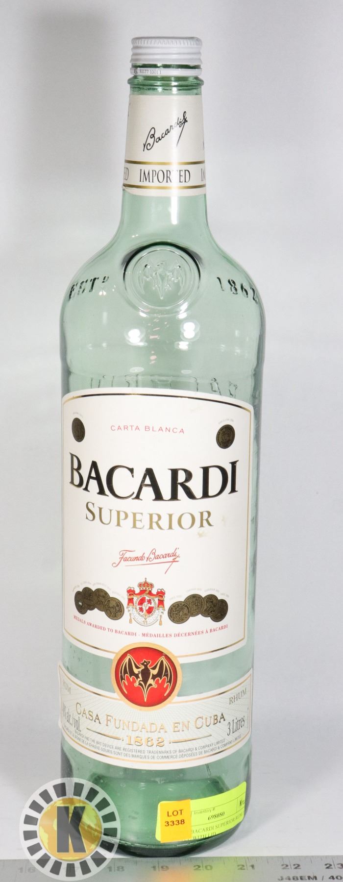 EMPTY BACARDI SUPERIOR RUM 3L BOTTLE WITH LID