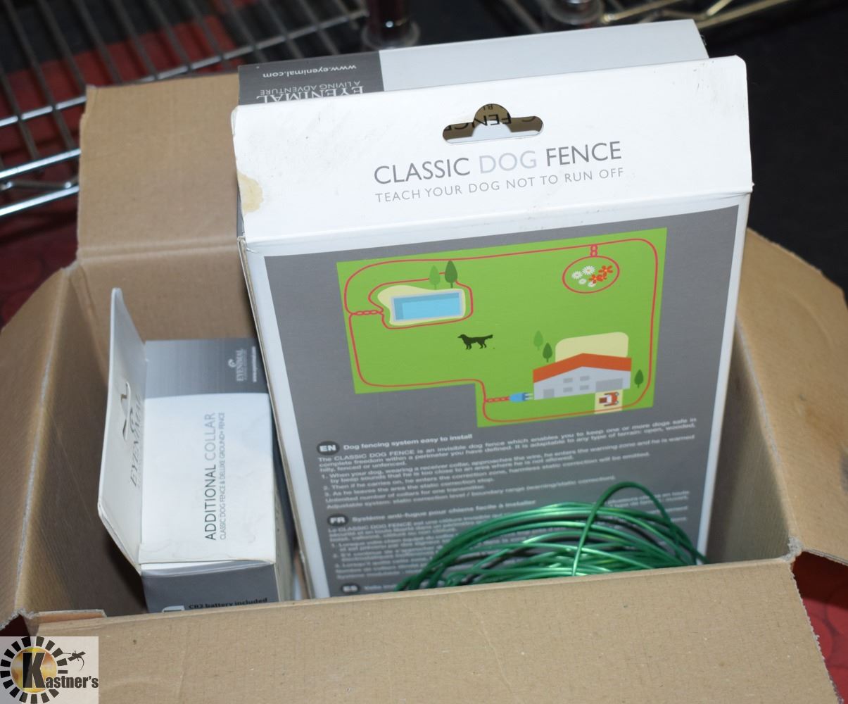 ELECTRONIC IN GROUND FENCE SYSTEM WITH 2 COLLARS. GIVES YOUR DOGS FREEDOM TO ROAM IN AN AREA DESIGNATED BY YOU UP TO 1/3 OF AN ACRE OF FENCING. INSTRUCTION MANUAL AND DEMO CD ARE INCLUDED