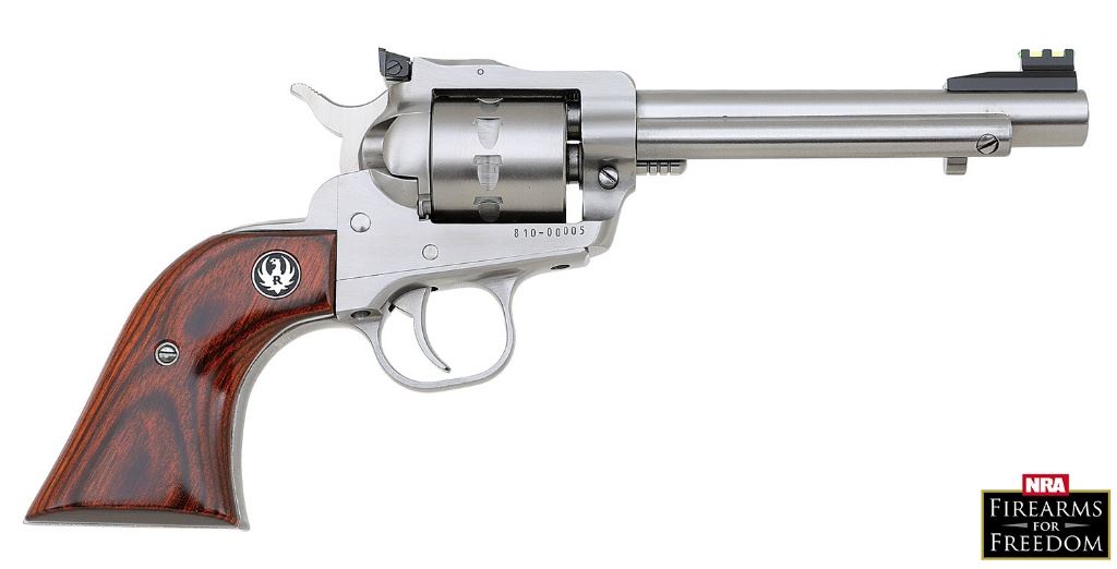 serial #810-00005, 22 LR, 5 1/2" barrel with a bright excellent bore. This 2012-manufactured revolver remains as-new-in-box, showing only perhaps a minute storage mark. It retains the standard adjustable fiber optic sights and timing and lockup are excellent. Included with this revolver is the matching factory plastic hardcase, manual, triggerlock, and factory fired case. This excellent low-number example presents an exciting opportunity for the veteran and novice collector alike and makes an excellent pair with our following lot. (26A11608-357) {MODERN} [N.R.A. Firearms For Freedom] (700/900)