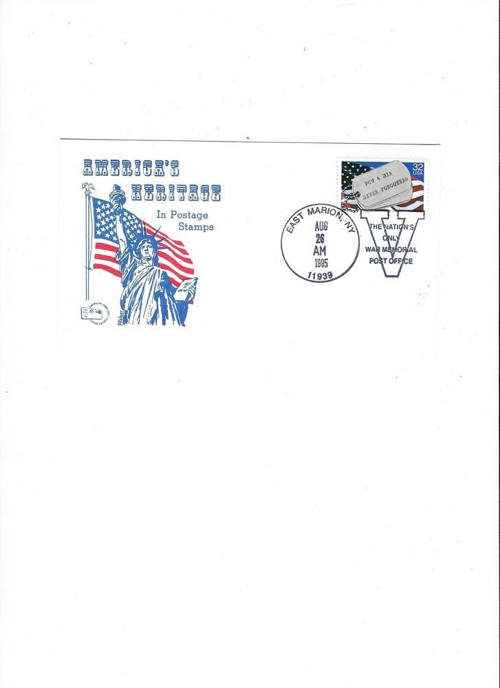 East Marion, NY - First Day Cover - The Nation's Only War Memorial Post Office Postmark - August 26th 1995