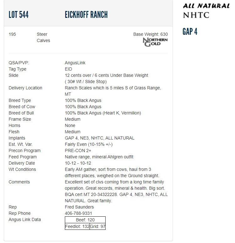 Eickhoff Ranch - 195 Steers; Base Weight: 630