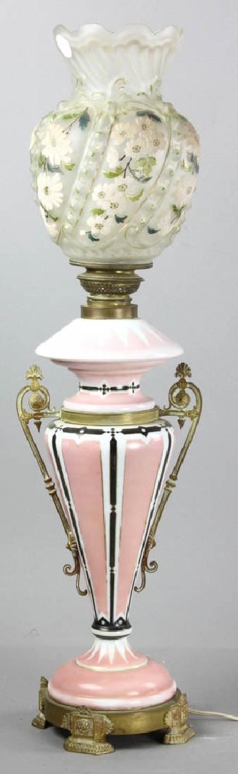 Electrified Oil Lamp Hand Decorated Shade