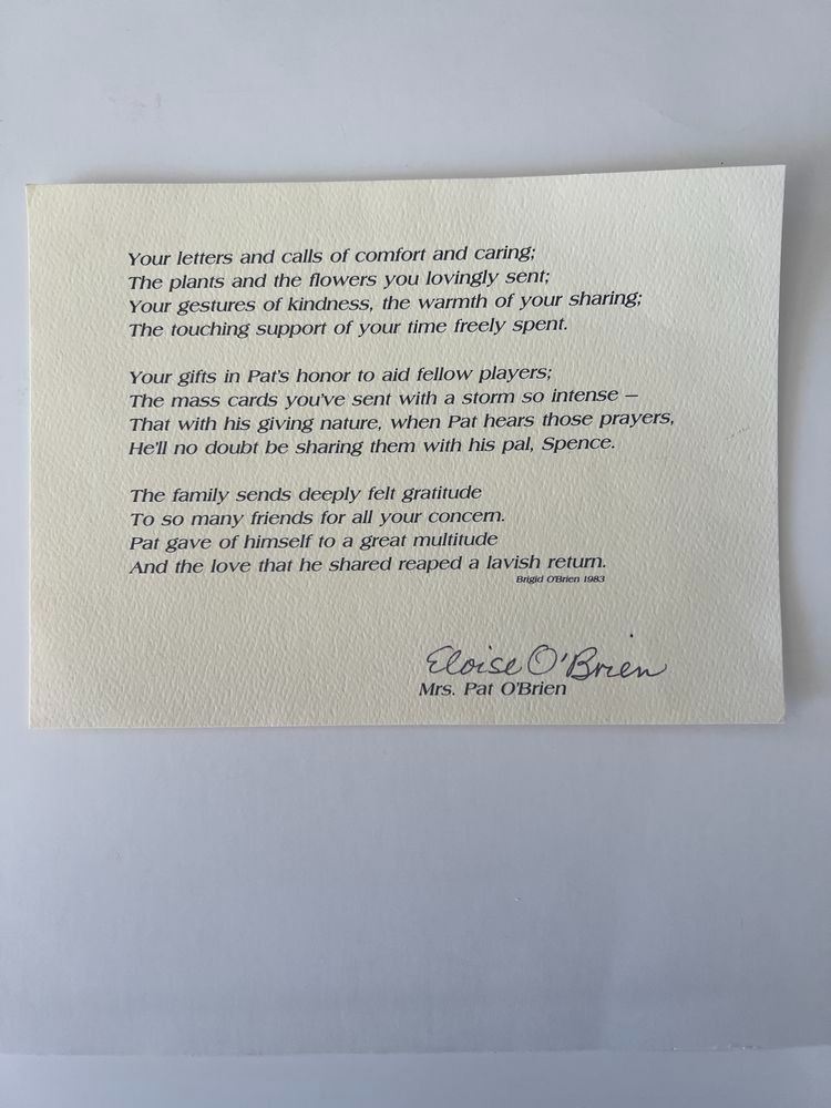 Eloise O'Brien signed typed note. 7x5 inches