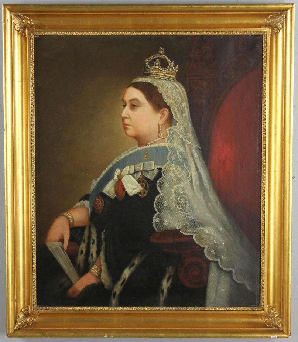 English School oil on canvas, Queen Victoria, 30" x 25", framed 36" x 31". Provenance: Boca Raton, Florida collection.
