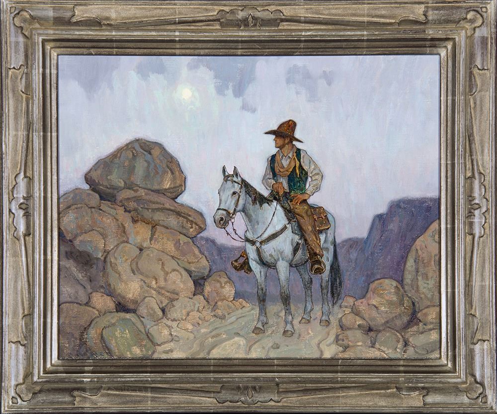 Artist: Eric Bowman; Title: Canyon Twilight; Medium: Oil on canvas mounted to board; Dimensions: 16 x 20 inches; Signed: Signed lower left; Framed/Base: 21 x 25 inches