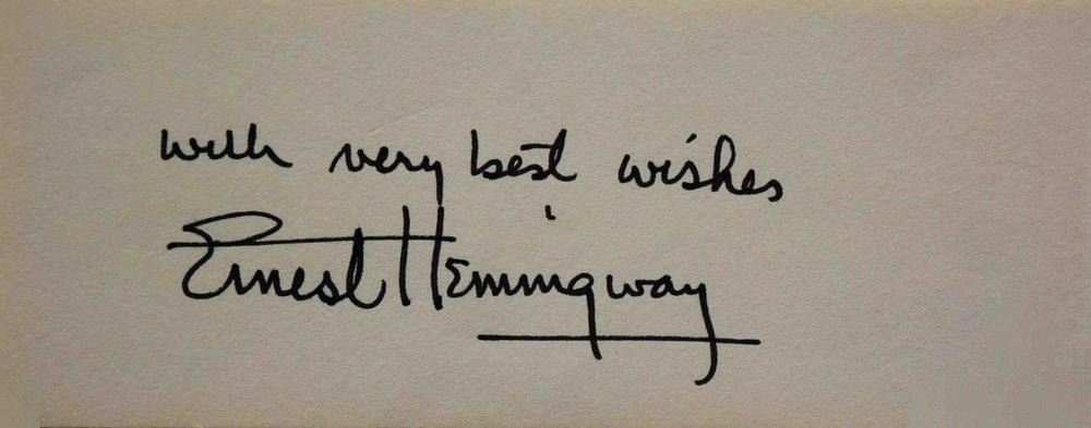 5 1/2 in. by 2 1/4 in. slip signed: With Very Best Wishes Ernest Hemingway