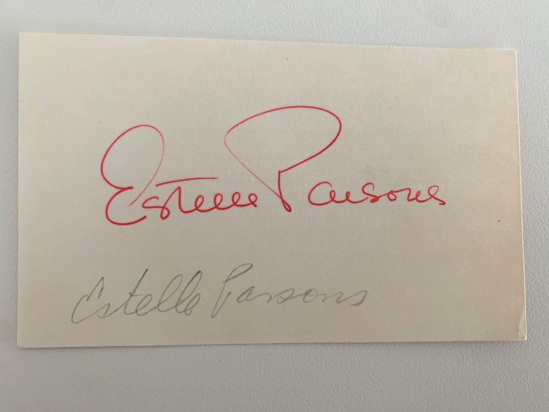Estelle Parsons original signature. 3x5 inches