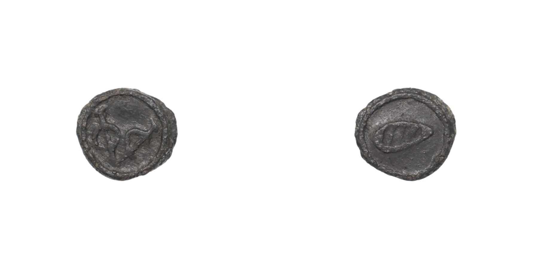 Cochin Mint, Lead Bazaruco or 1/8 Doit, 1.75g, 13.92mm, struck during the period 1724-1795, Obv: VOC monogram, numeric 8 above voc, Rev: Oval shield within circle. (KM # 3). Very Fine.