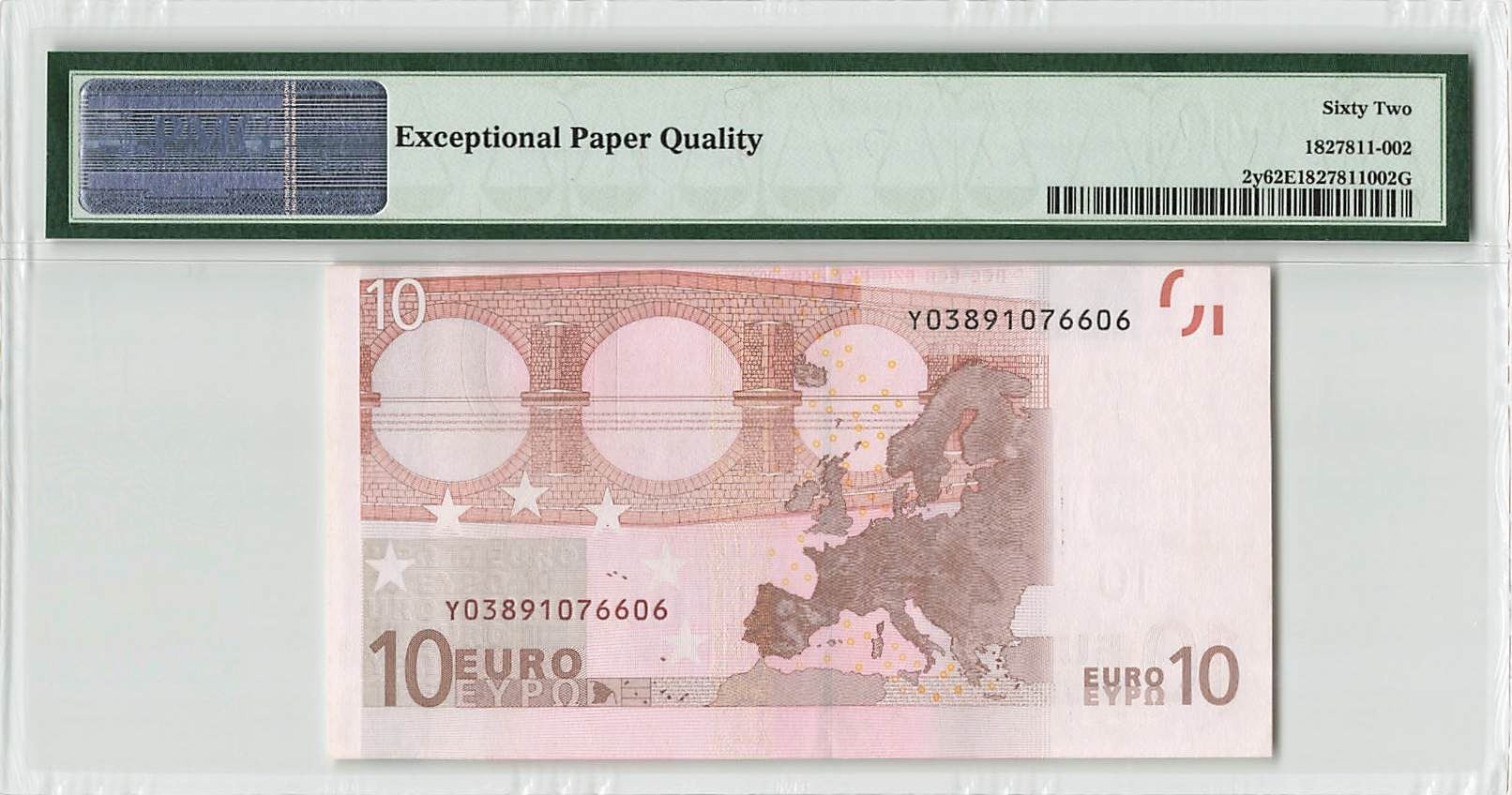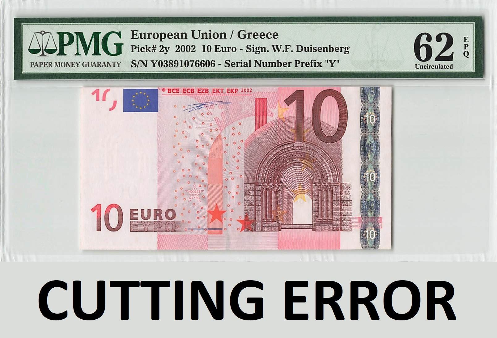 European Union 10 Euro 2002 Cutting Error Greece N002E3 Duisenberg Pick 2y PMG Uncirculated 62 EPQ