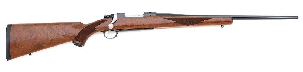 serial #780-00142, 243 Win, 22'' barrel with a bright excellent bore. A handsome first-year rifle which comes from the personal collection of Stephen Sanetti, former President and COO of Sturm, Ruger & Co., and includes a certificate of authenticity verifying that it was acquired by Mr. Sanetti during his tenure as a member of Ruger's now-defunct ''low serial number'' program, featuring his number ''142''. This low-numbered Mark II appears as-new-in-box, showing only perhaps a light storage mark, with the frame toning lightly to plum and the factory buttpad showing typical scattered white discoloration from age. Included is the factory box, correctly end-labeled and numbered to the gun, manual, paperwork, new-in-box Ruger rings, and an original factory invoice indicating that this rifle left the factory in February of 1993. A lovely example in a desirable chambering. (26A11655-8) {MODERN} [The Stephen Sanetti Collection] (700/900)