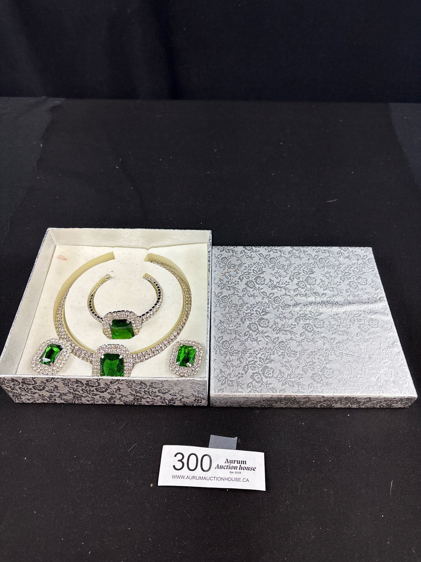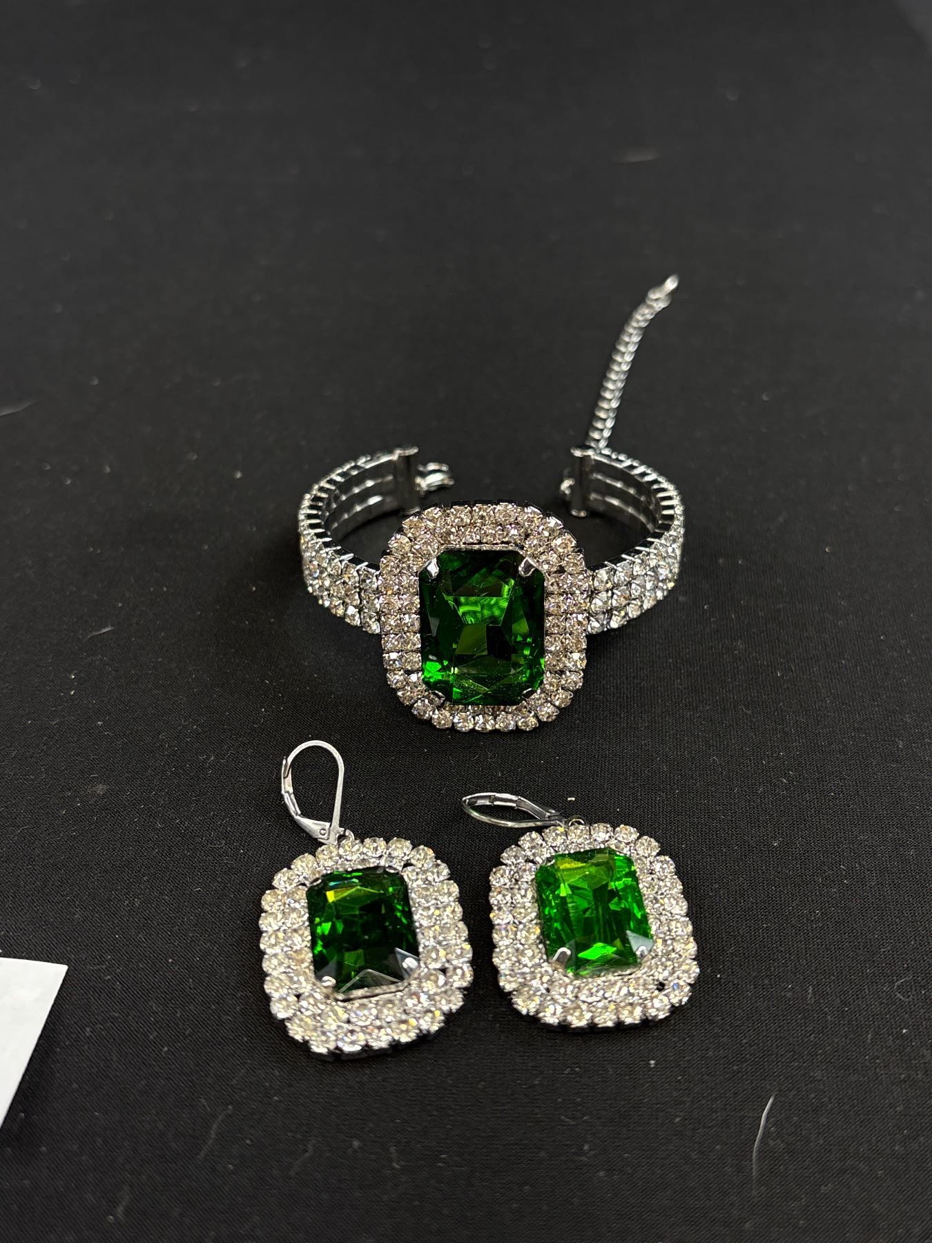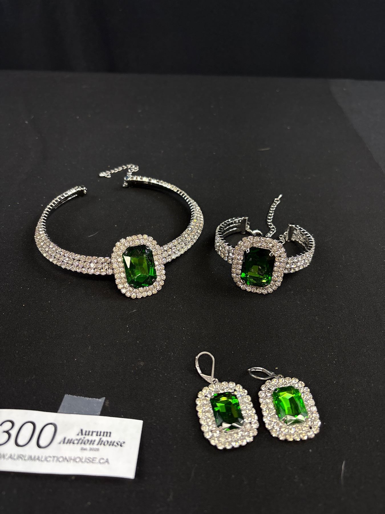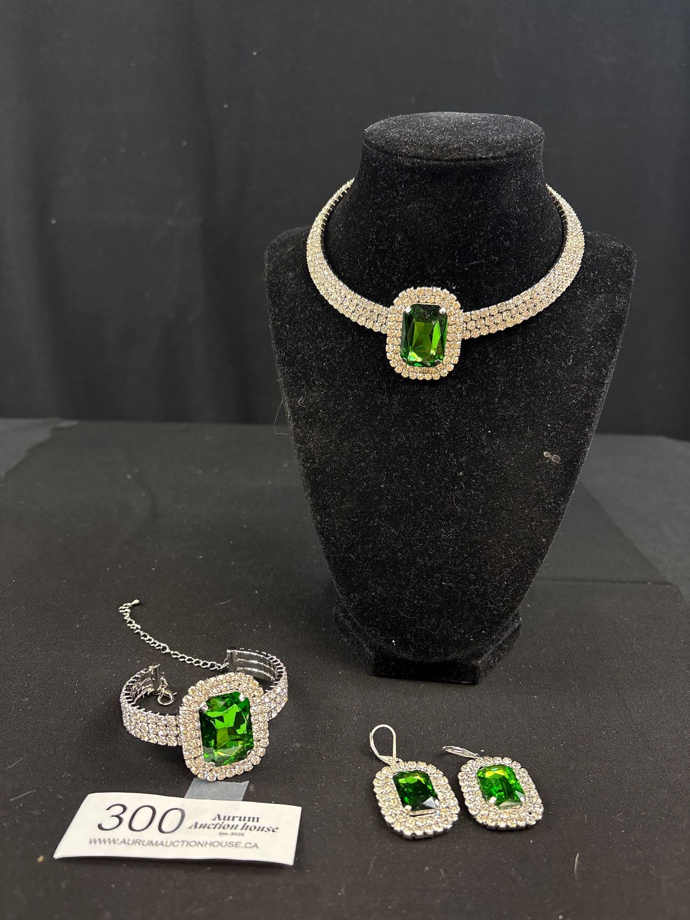 Exquisite! Vintage Peridot Rhinestone Necklace Bracelet Earring Set