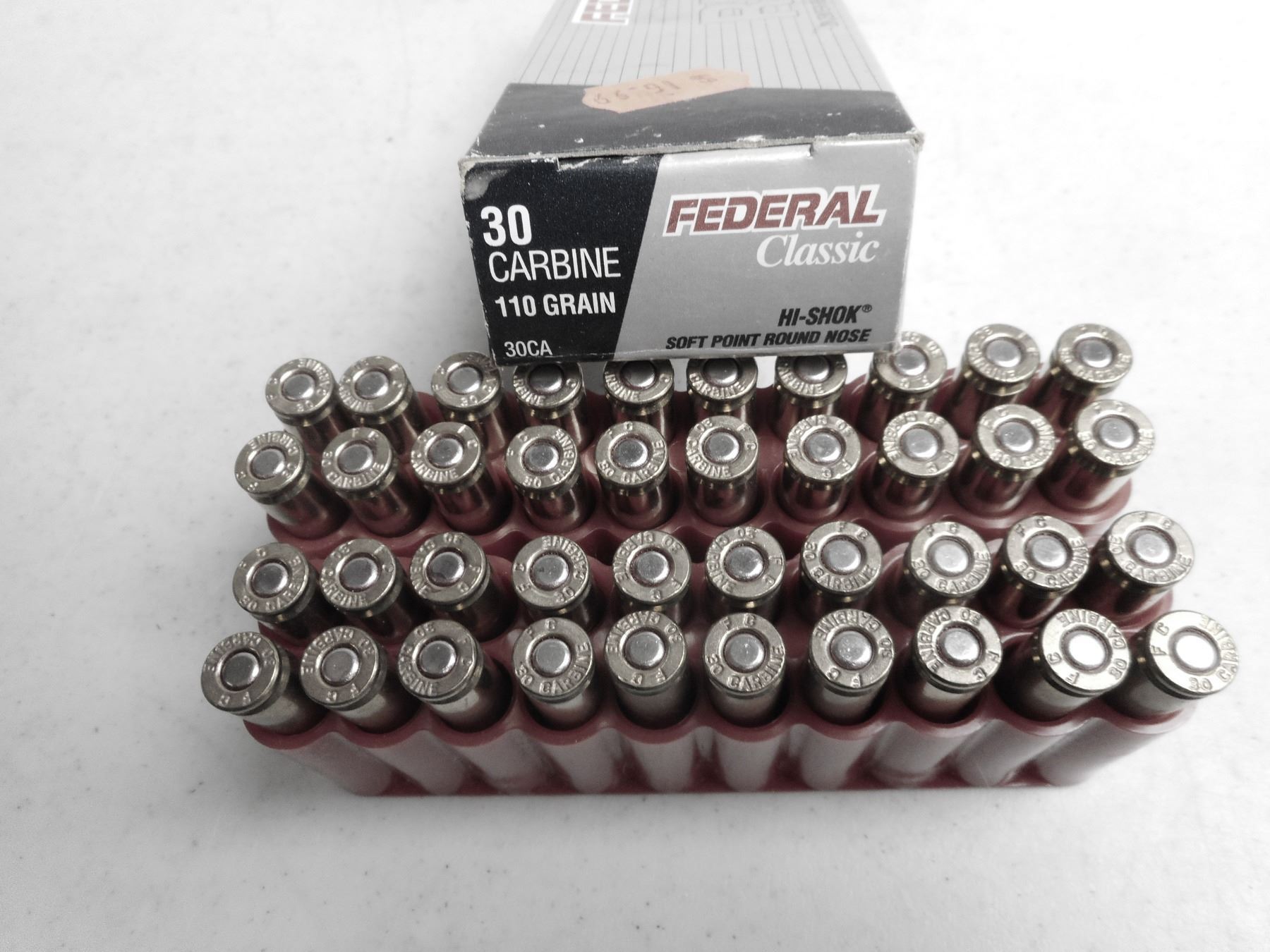 FEDERAL 30 CARBINE AMMO , 40 RNDS FEDERAL 30 CARBINE, 110 GRNS AMMO