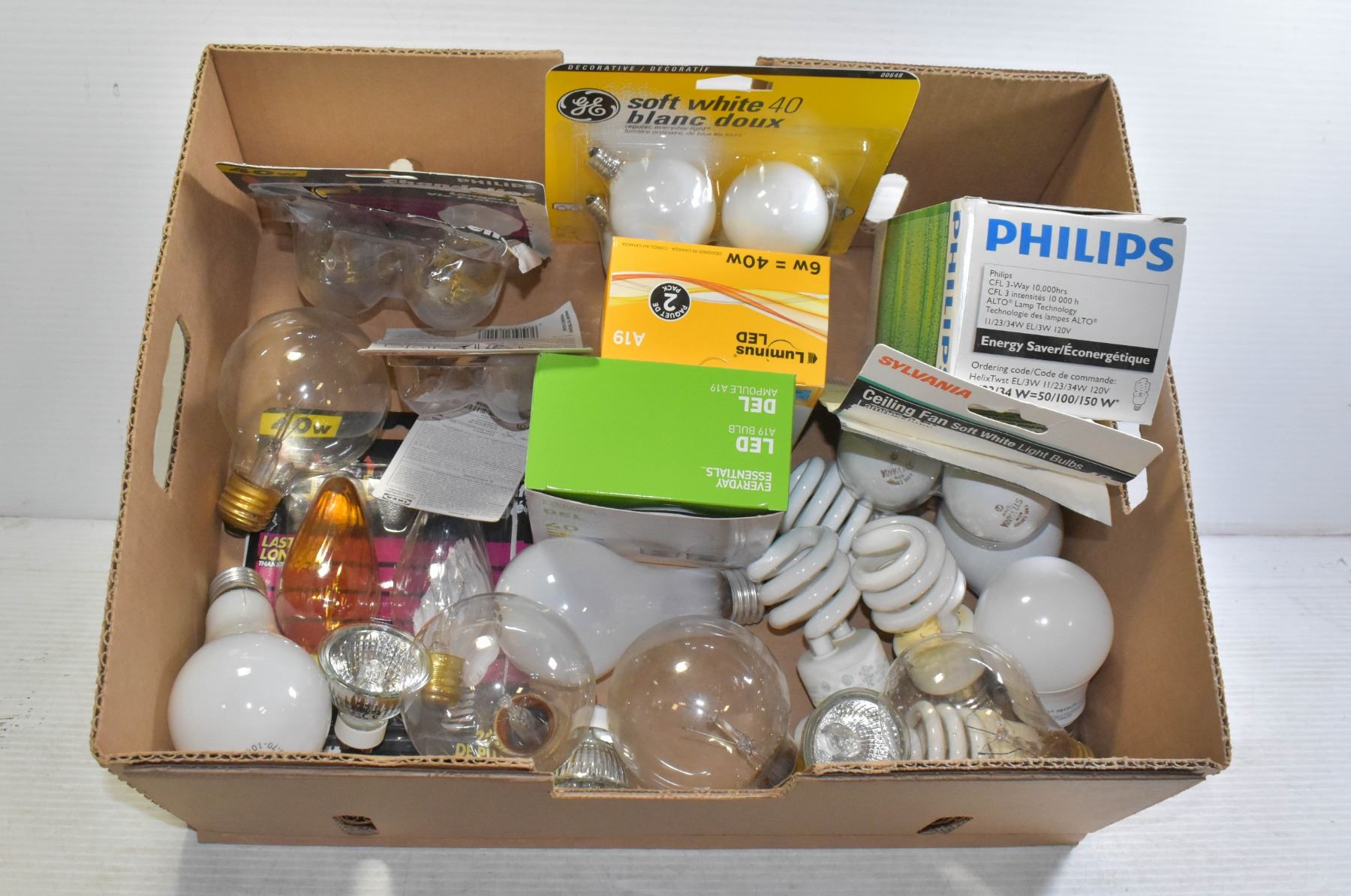 FLAT LOT OF ASSORTED LIGHT BULBS