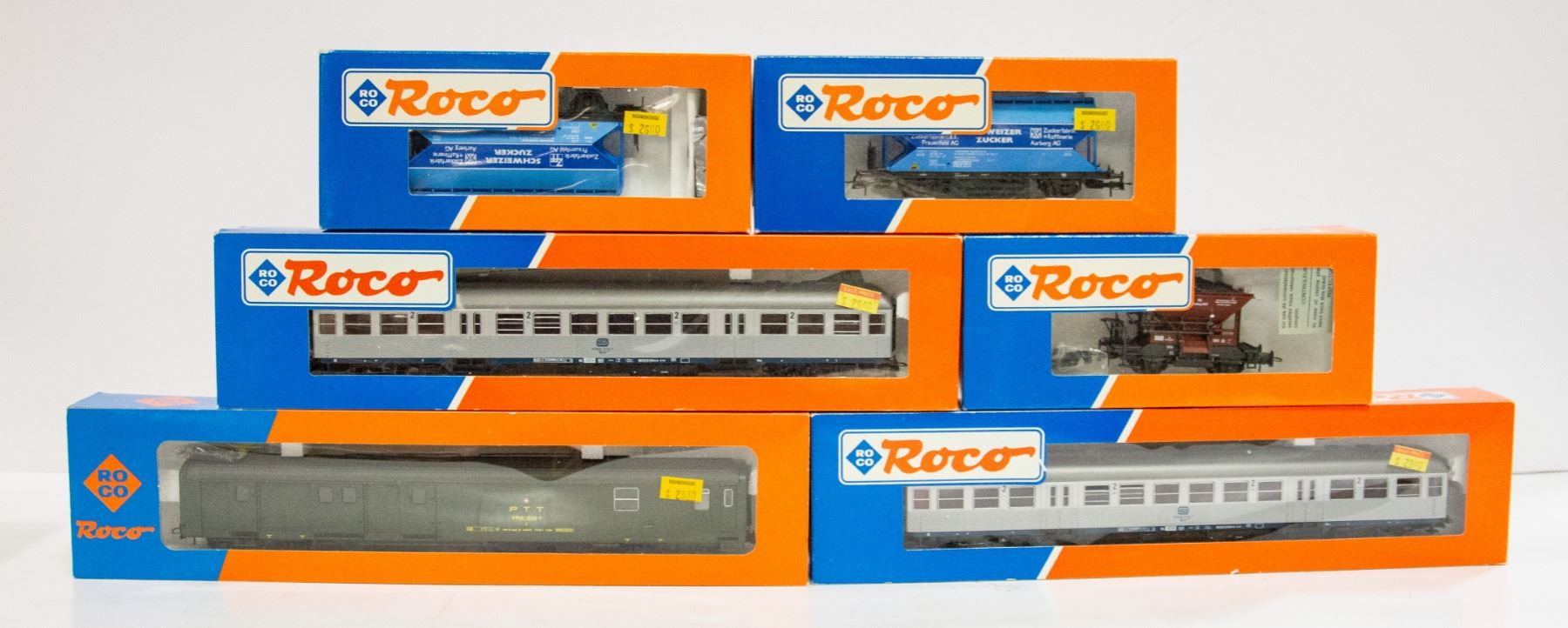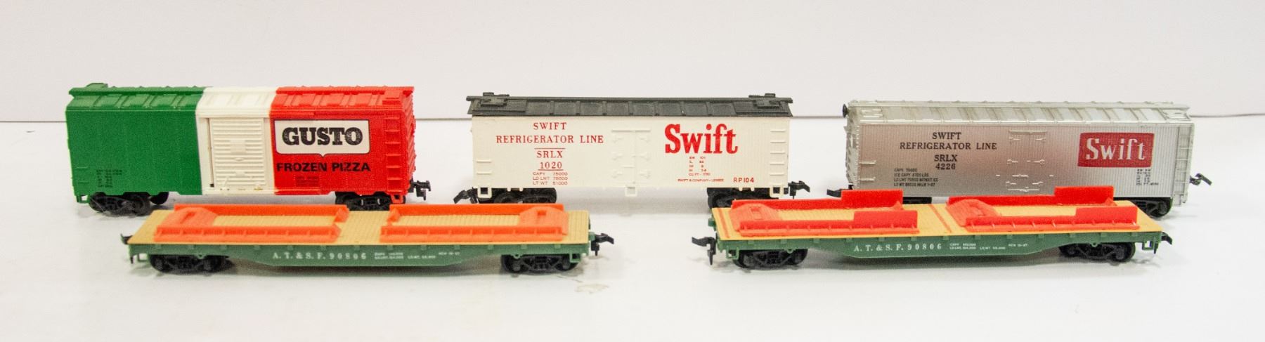 FLAT LOT OF HO TRAIN CARS 6 IN BOX & 7 LOOSE