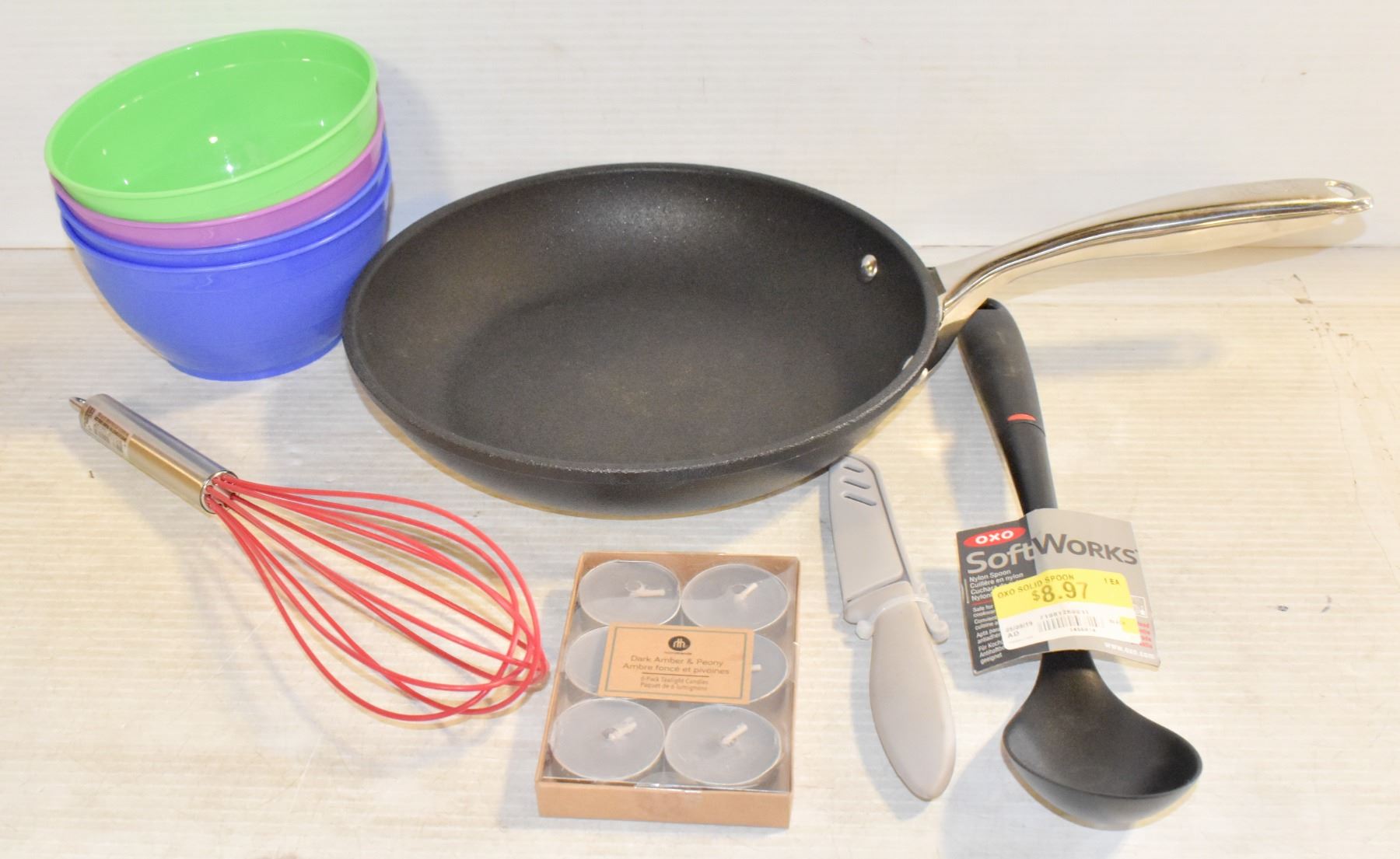 FLAT OF KITCHEN ITEMS & DISHWARE