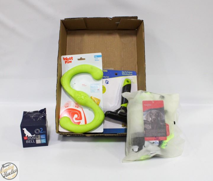 FLAT OF NEW ASSORTED DOG TOYS ETC