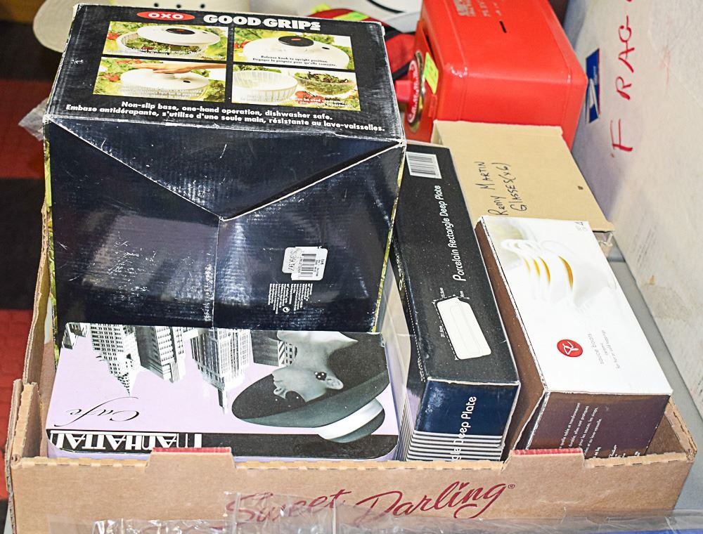 MANHATTAN CAFE CUPS WITH SPOON SET, PORCELAIN RECTANGLE DEEP PLATE, SET OF 4 SAUCE BOATS & REMY MARTIN GLASSES (SET OF 6)