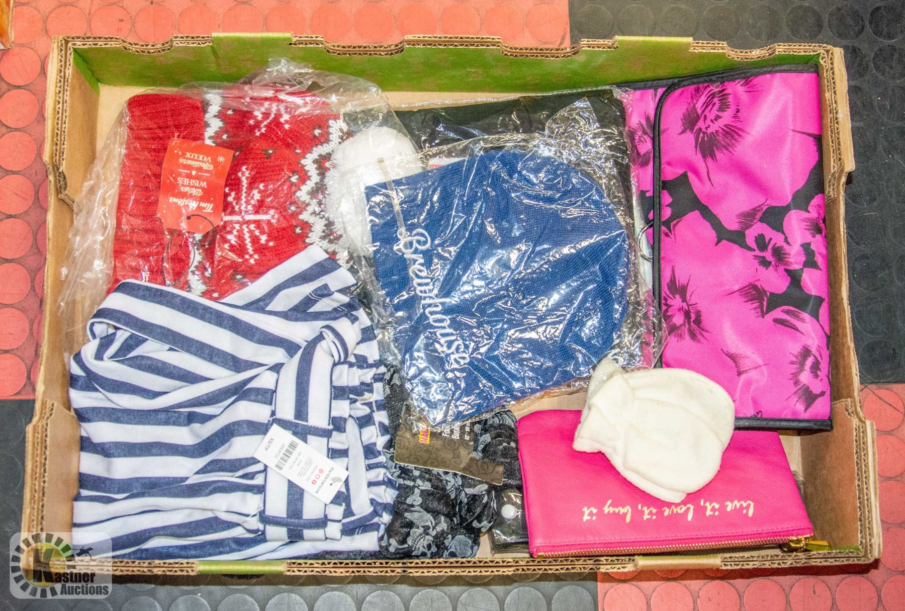 MENS ATHLETIC APPAREL SIZE L, TIM HORTONS WINTER HAT, ARDENE SKIRT (XS), SKULL SCARF HANGER JEWELLERY/MAKEUP BAG, CHILDRENS MITTS & MAKEUP BAG
