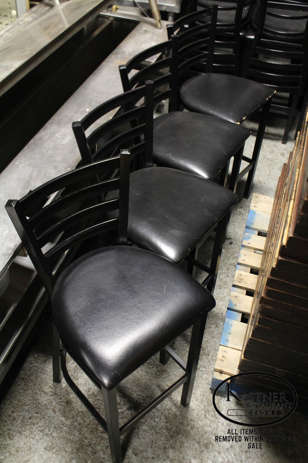 FOUR PADDED BLACK BAR HEIGHT CHAIRS W/ METAL FRAME