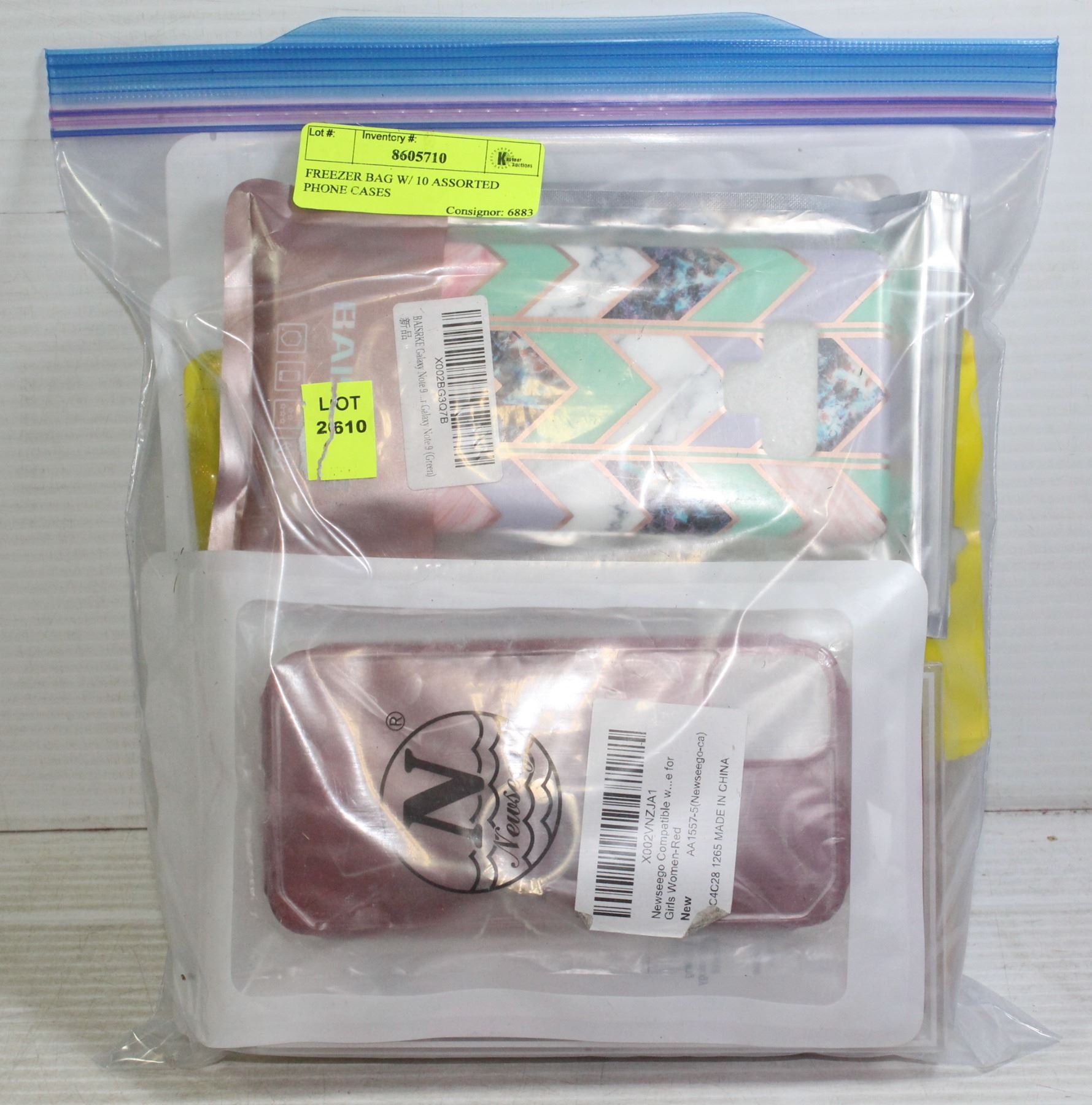 FREEZER BAG W/ 10 ASSORTED PHONE CASES