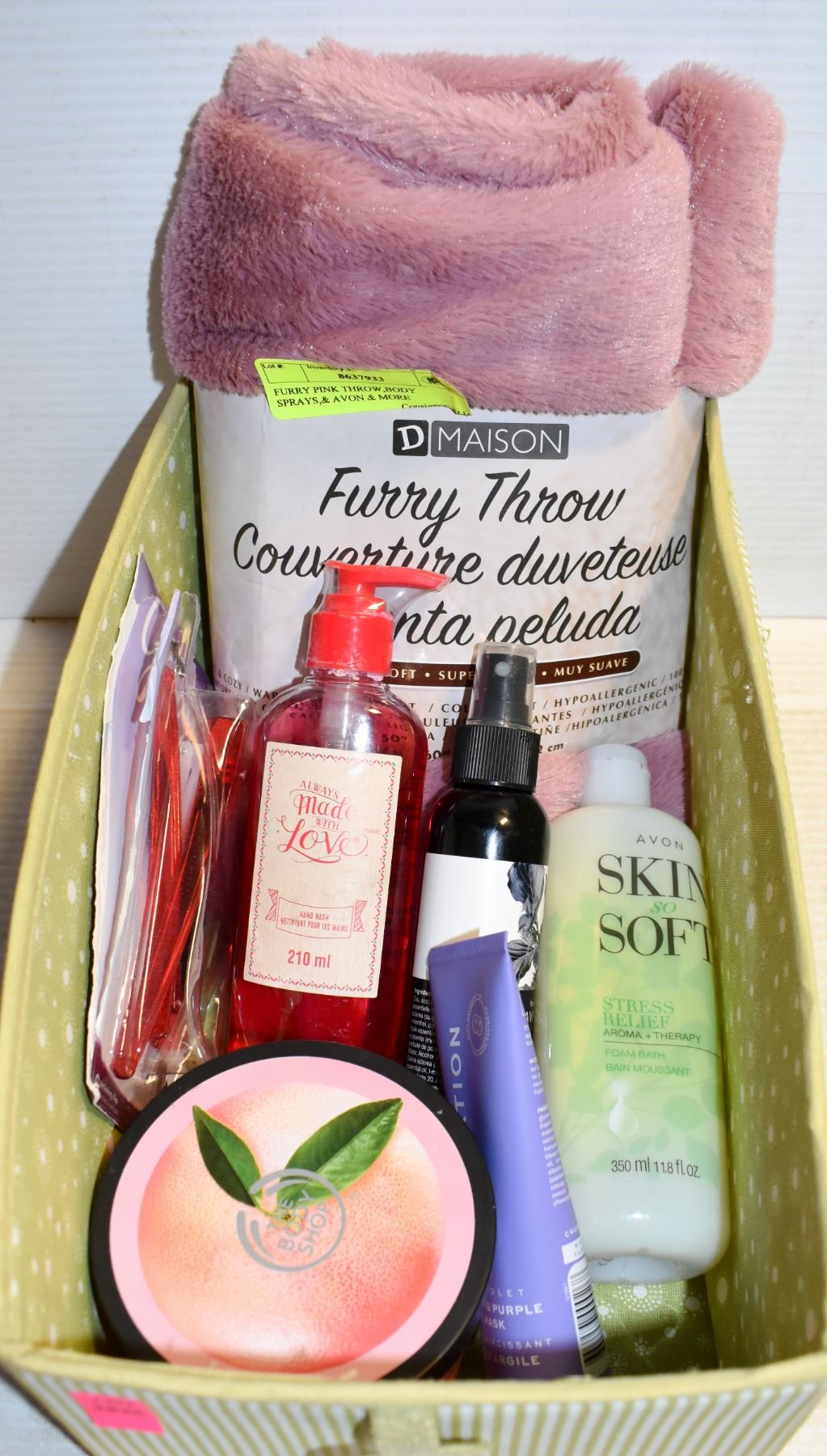 FURRY PINK THROW,BODY SPRAYS,& AVON & MORE